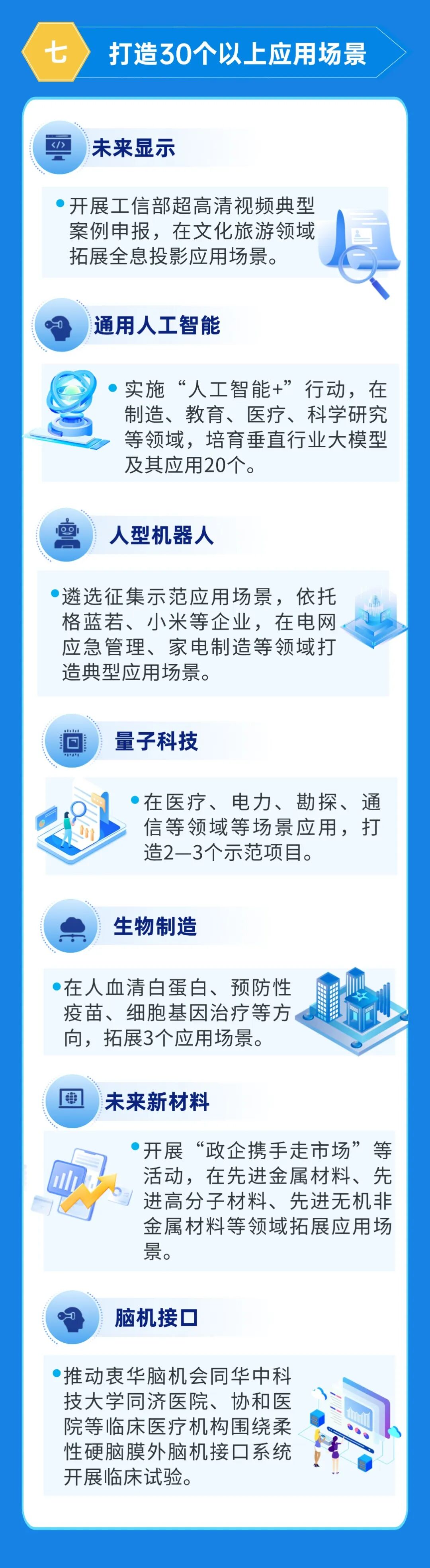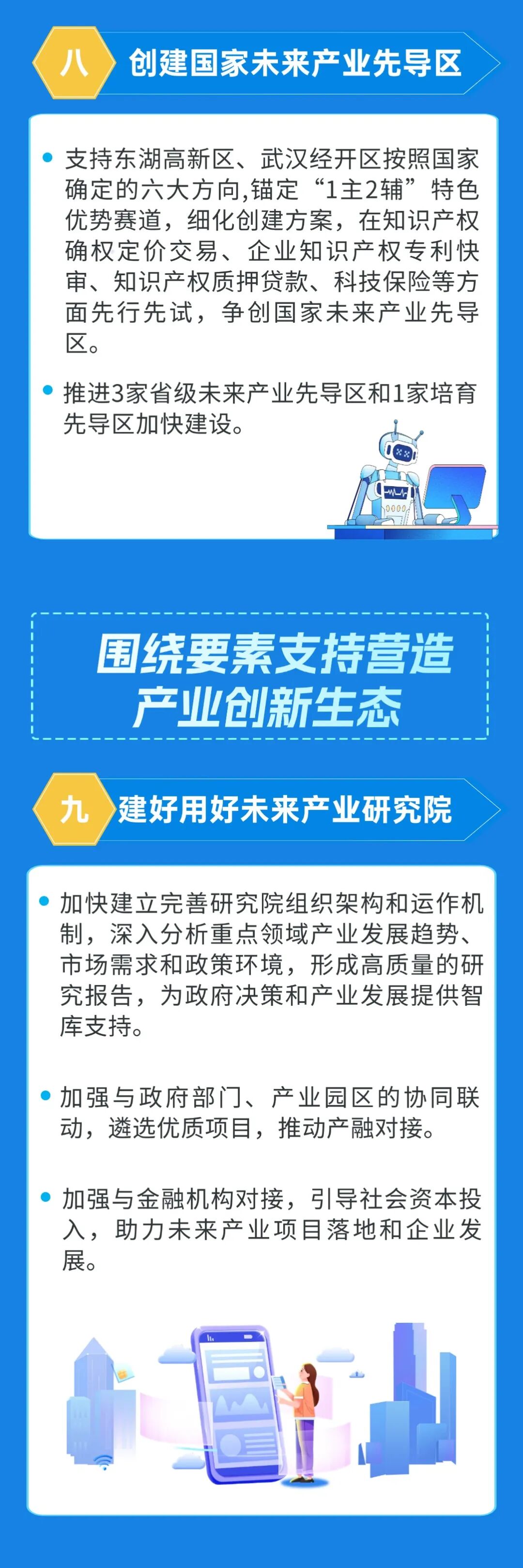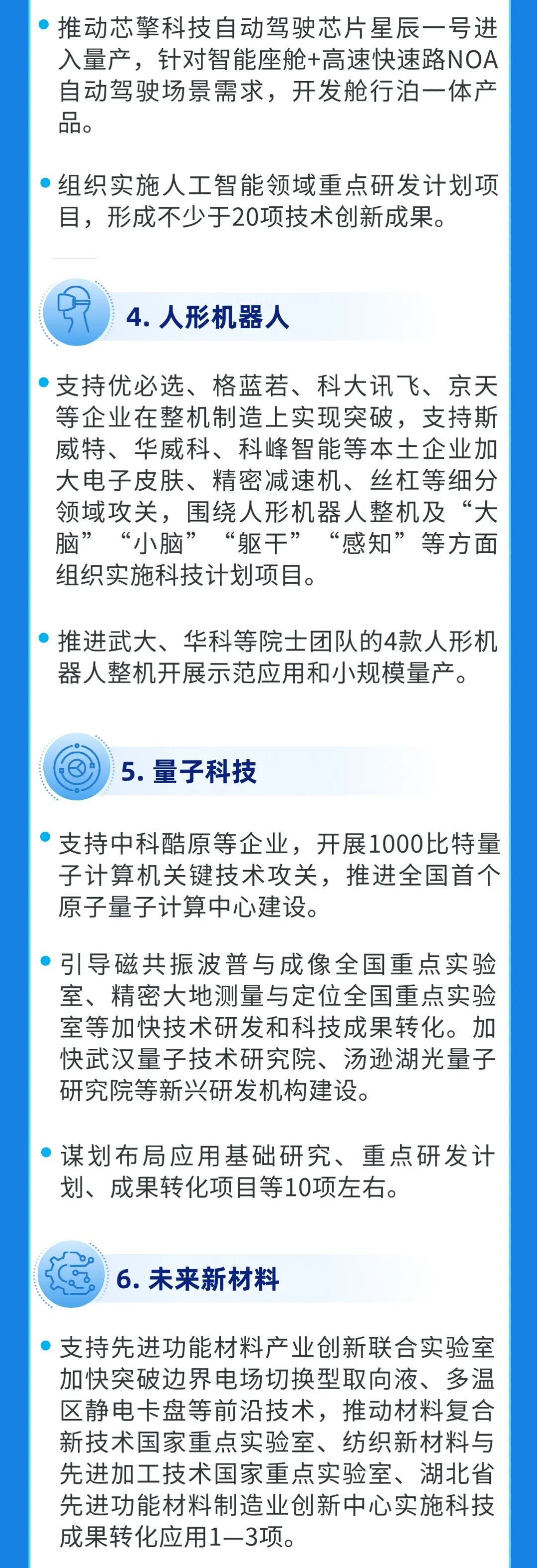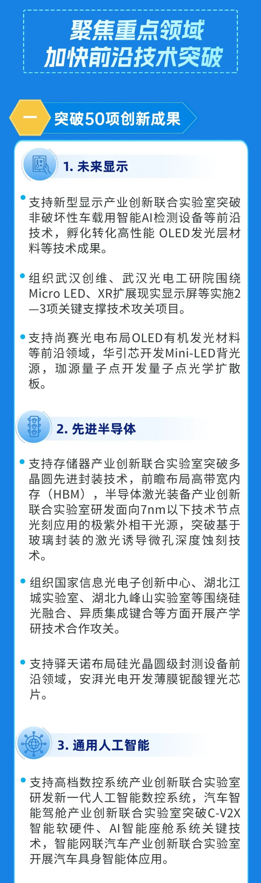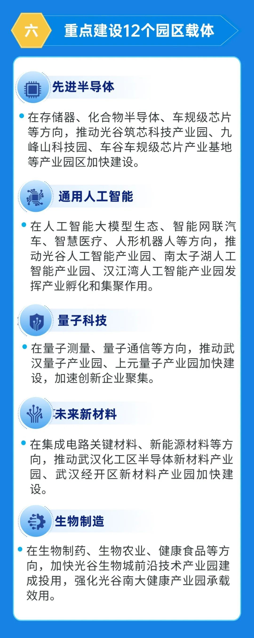 进一步开辟新领域新赛道,塑造新动能新优势,《清单》还提到,要打造30个以上应用场景,涵盖未来显示、通用人工智能等多个领域,加速技术的实际应用。此外,武汉还将支持东湖高新区、武汉经开区争创国家未来产业先导区。
