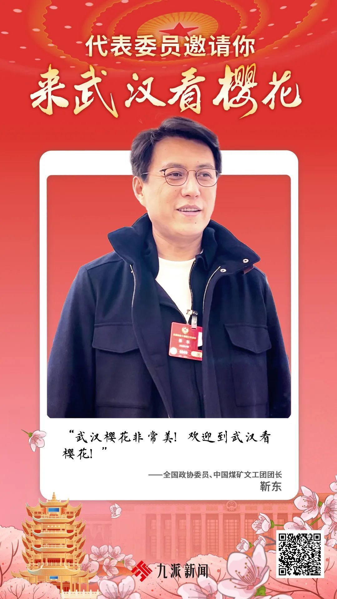 全国政协委员、中国煤矿文工团团长靳东在接受长江日报采访时发出邀请:“武汉樱花非常美!欢迎到武汉看樱花!”