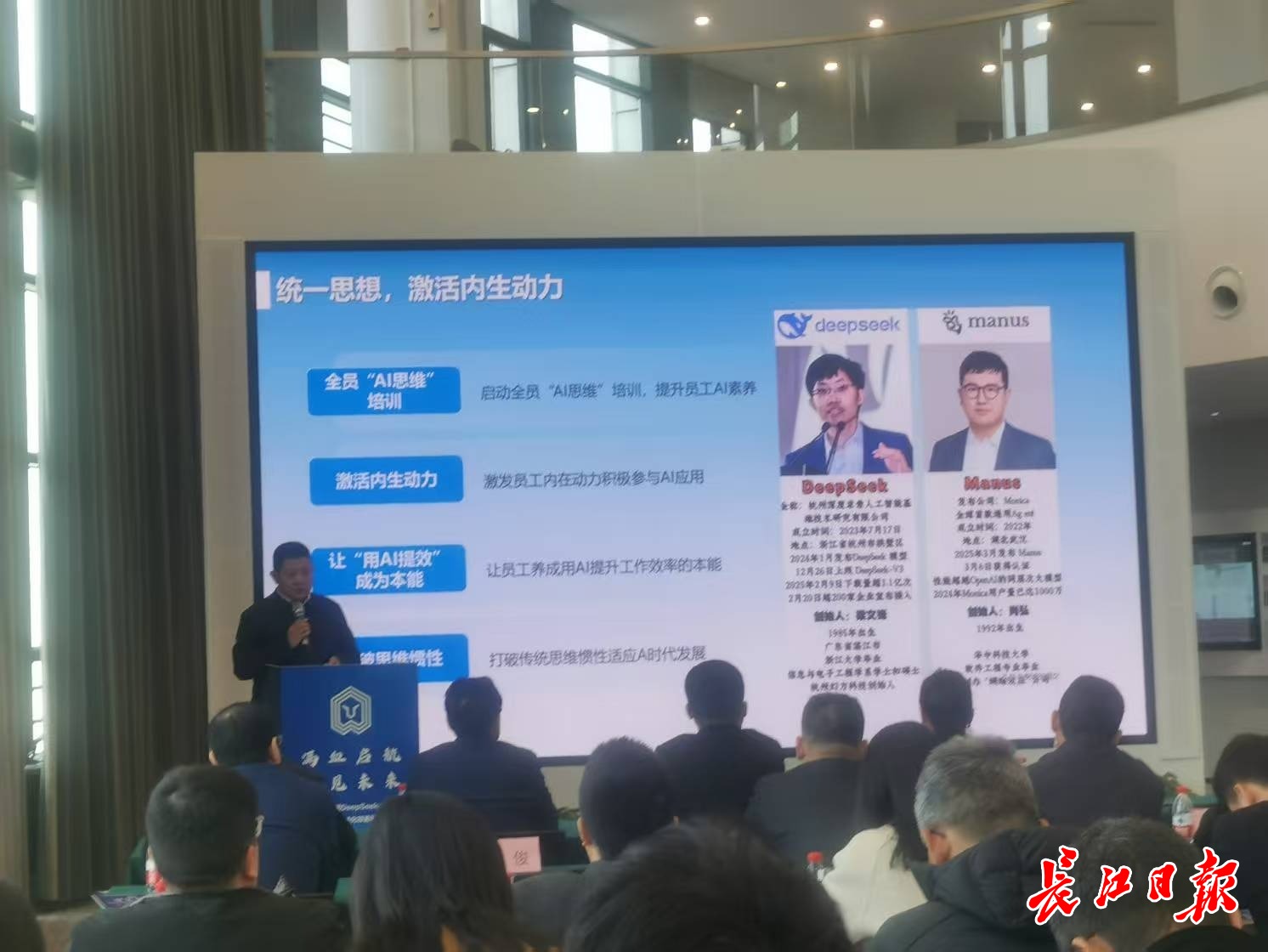 “DeepSeek和你对话,AI帮你做事。”武汉双碳产业发展服务有限公司技术主管吴智琪说,该大模型搭建很多工作流,实现全自动审批。比如,公司招聘收到100份电子版简历,用人工一个个看至少需要2—3小时筛选,而该大模型可实现“人才画像”,1—2分钟就能选出“意中人”。