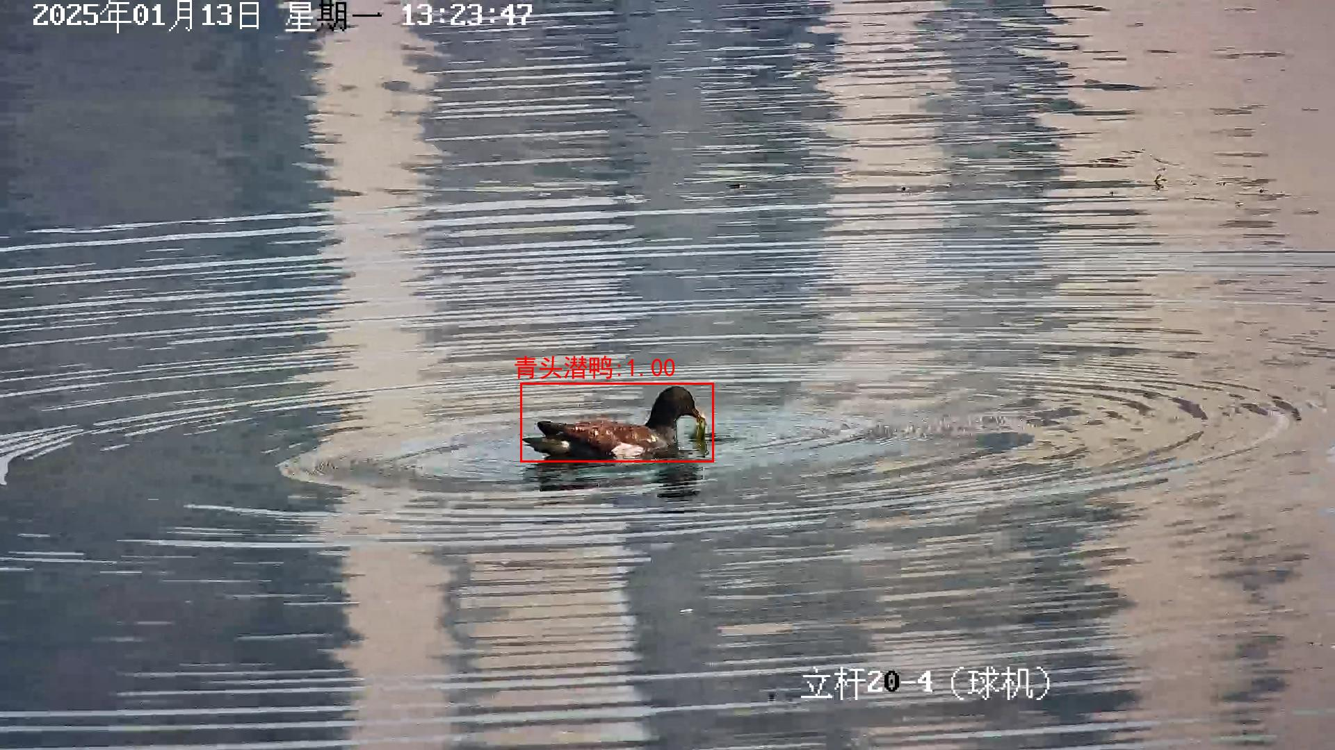 长江日报记者注意到,这些实时画面中,每只鸟上方都标注着鸟名和相似值,鸟种类和数量、鸟群密度数据等信息清晰可见。其中,素有“鸟类大熊猫”之称的国家一级保护动物青头潜鸭也在其中。