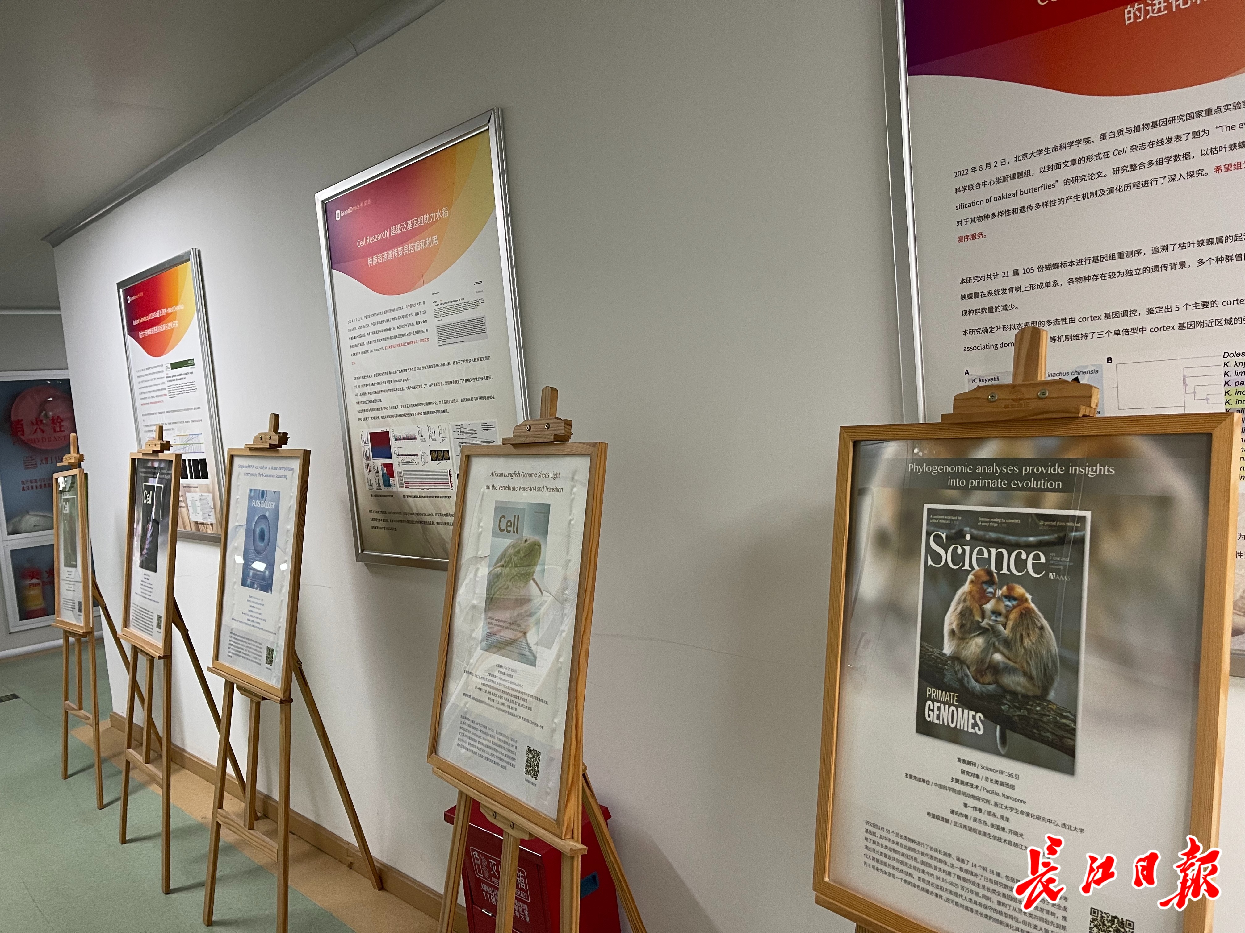 实验室外展示的是企业参与项目的海报,仔细一看都是重大成果。长江日报记者 李佳 摄