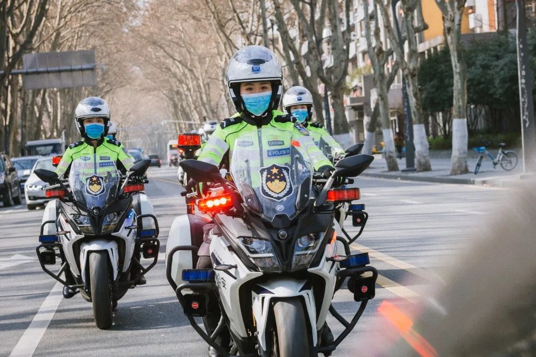 江岸交通大队女子汉警快骑。通讯员武龚萱 摄