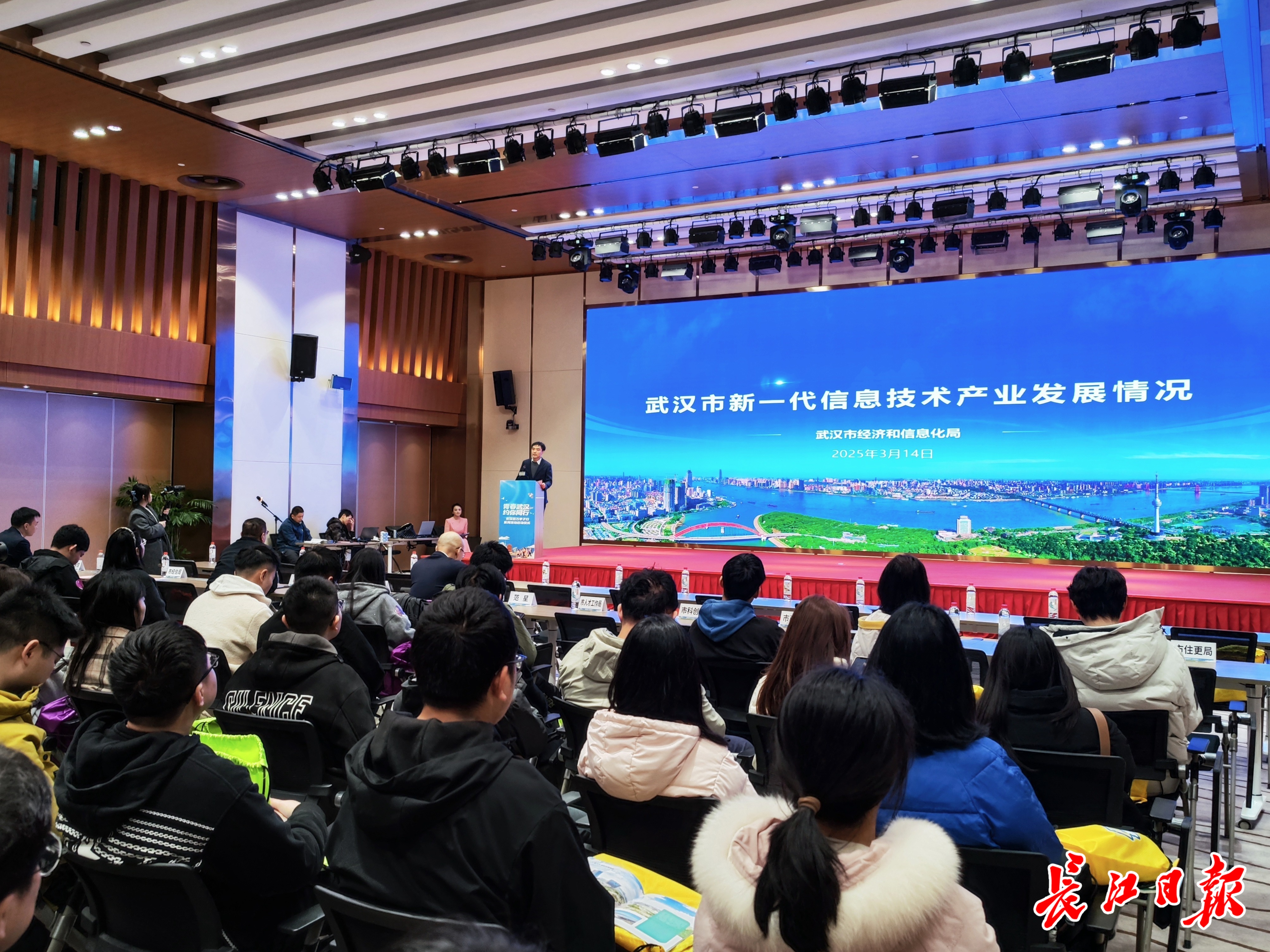 这一幕发生在2025年“青春武汉 约你同行”在汉百万学子行系列活动启动仪式现场。3月14日,来自清华大学、华中科技大学、武汉理工大学、中南民族大学、武汉科技大学的120名大学生兵分三路,探访新一代信息技术产业,漫步东湖樱花园,感受武汉“科技高地、人文名城、生态宜居”的城市魅力。