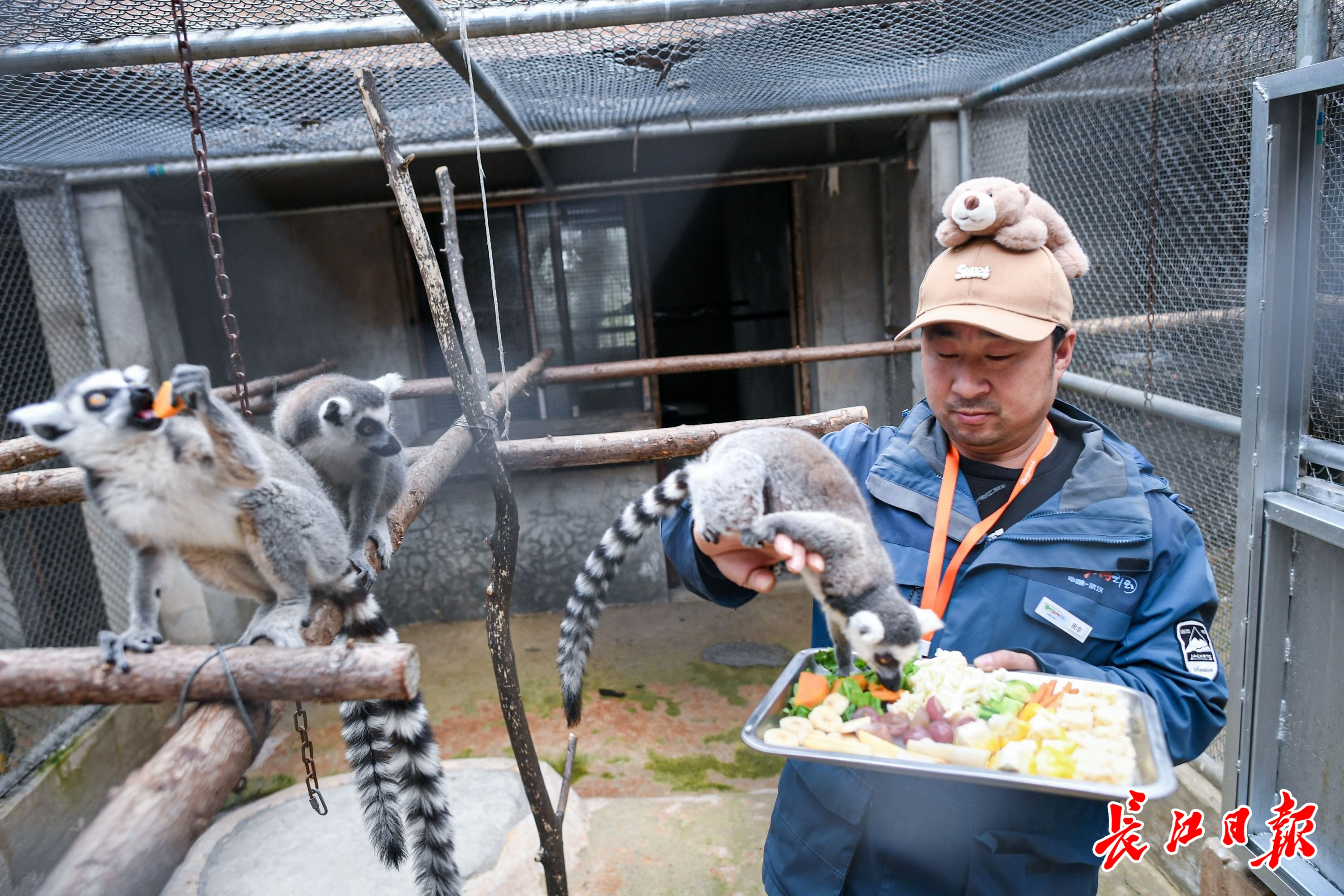 村民祝念在给环尾狐猴喂食。 长江日报记者 史伟 摄