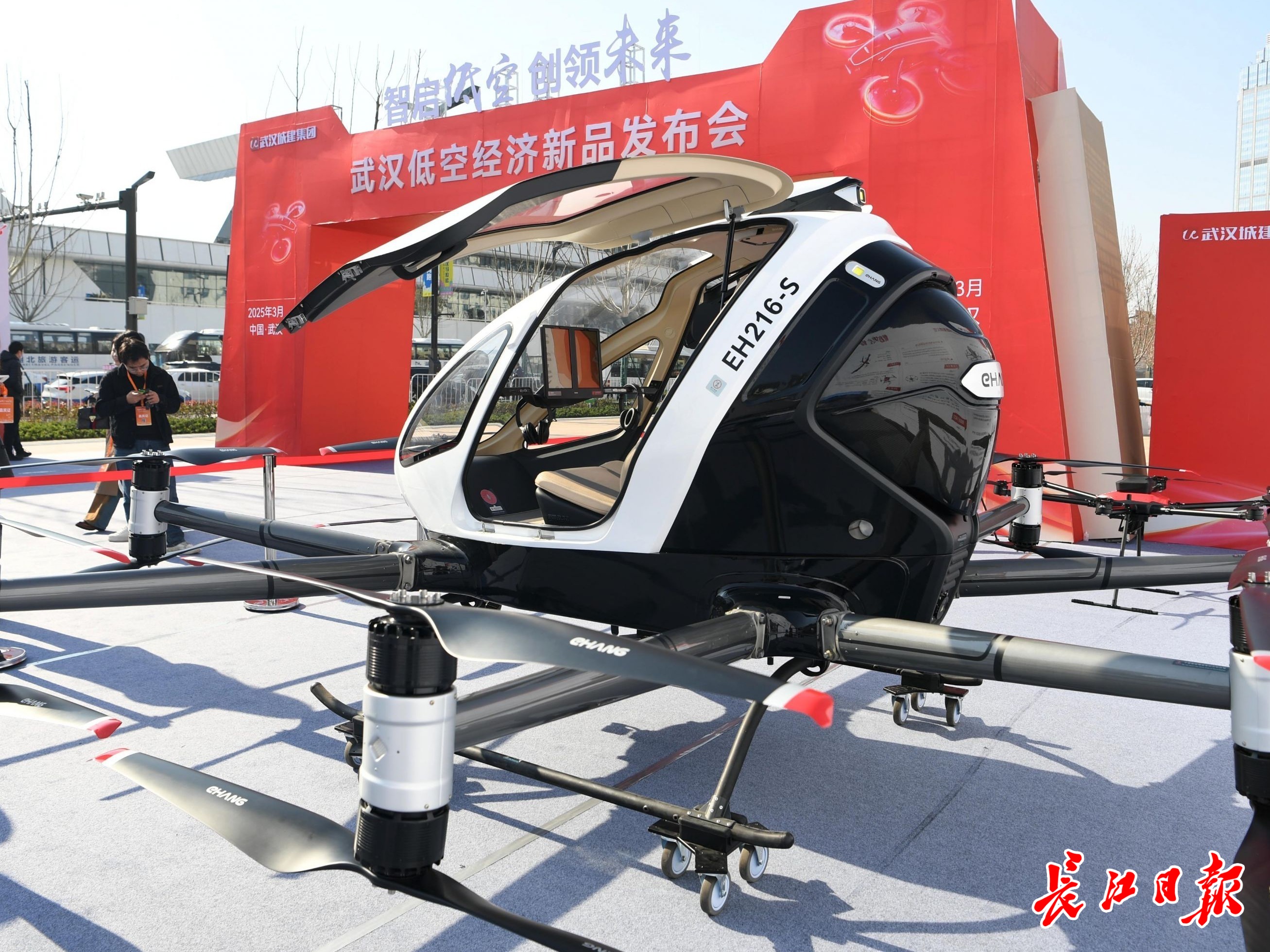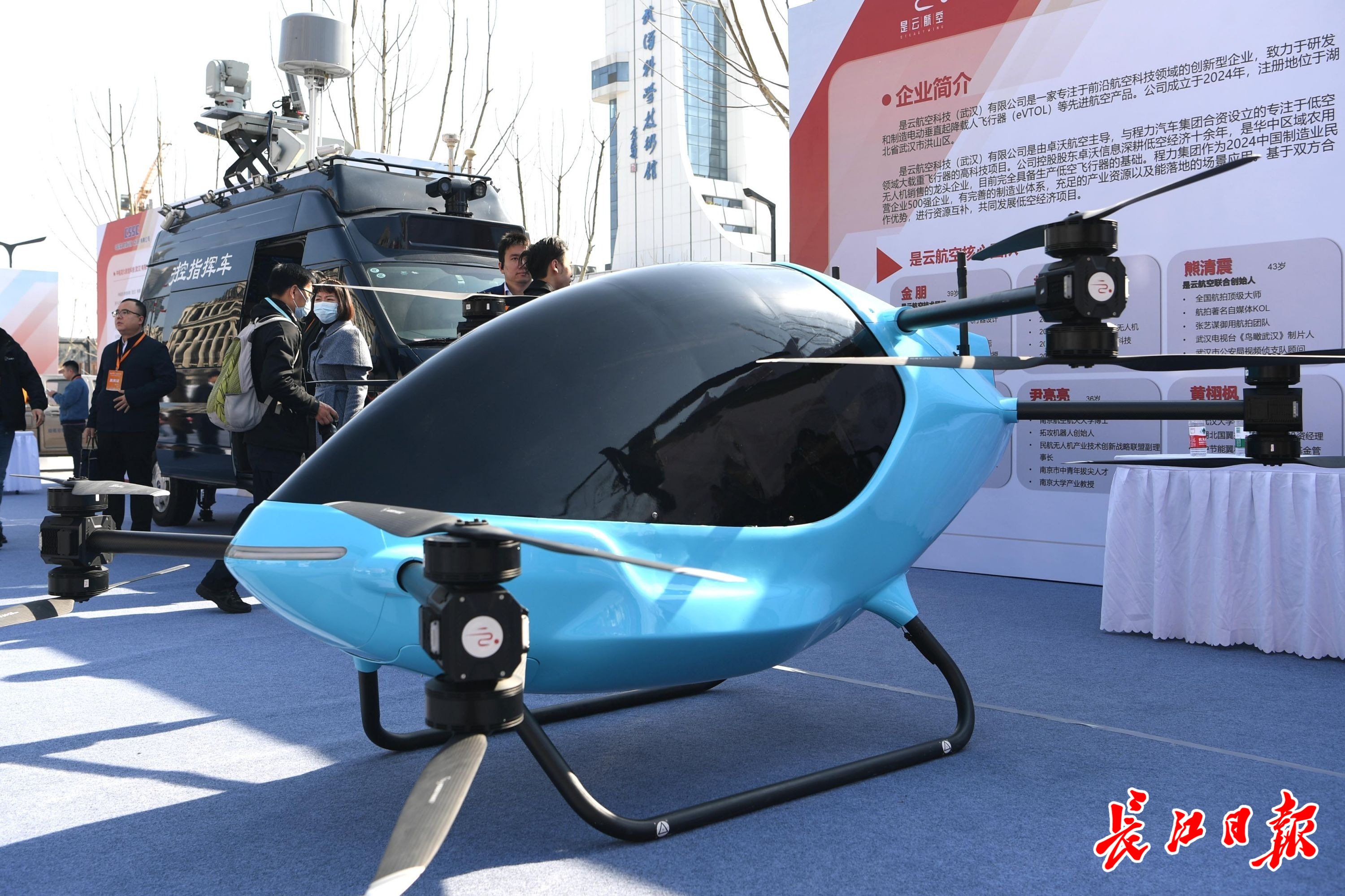 天亿通航展示的新型无人驾驶载人飞机。长江日报记者高勇 摄
