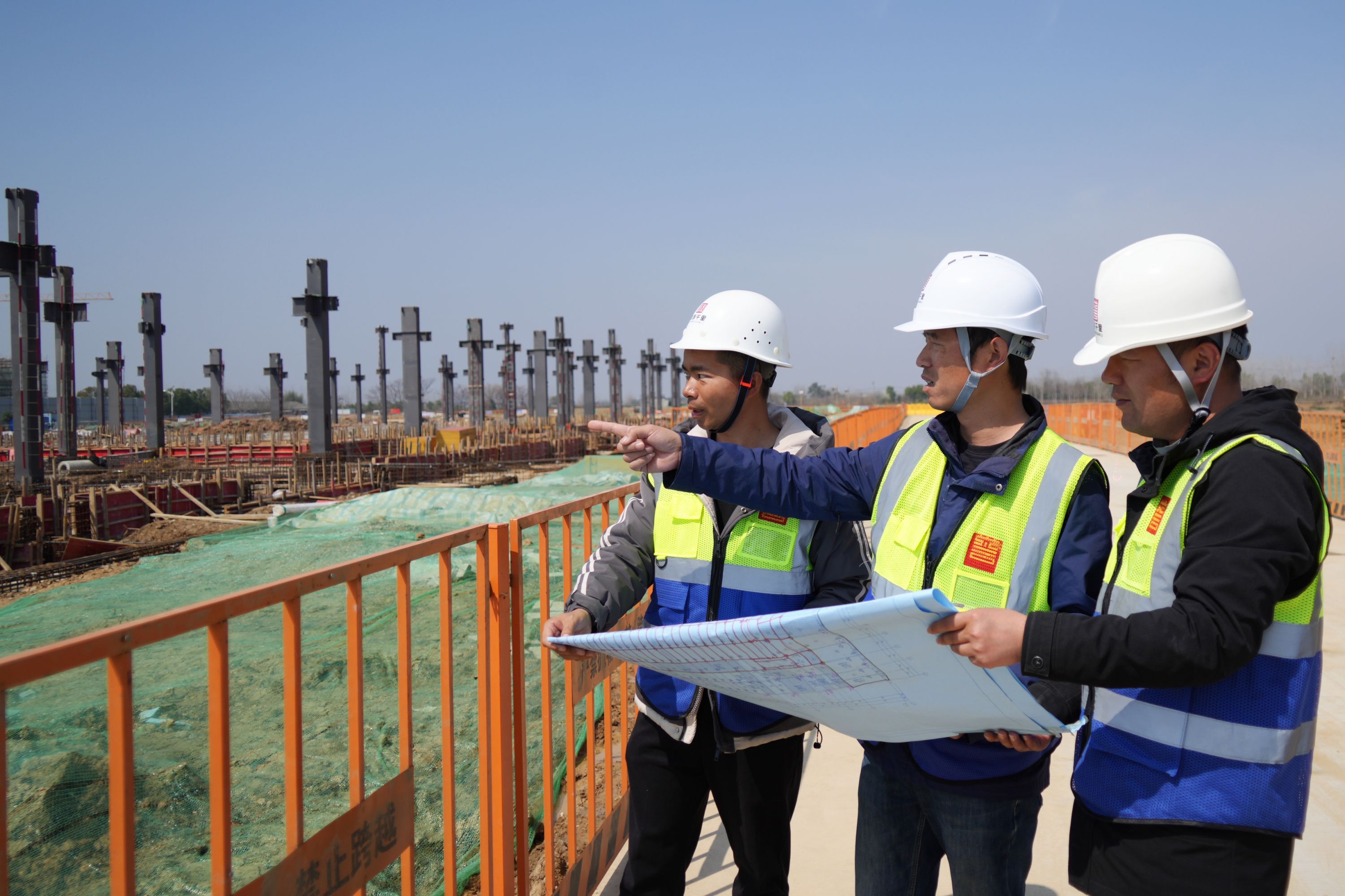 记者现场看到,100多名工人正在有条不紊地开展着各自的工作。100多根9米高的钢柱已经成网络状密布在工地上。