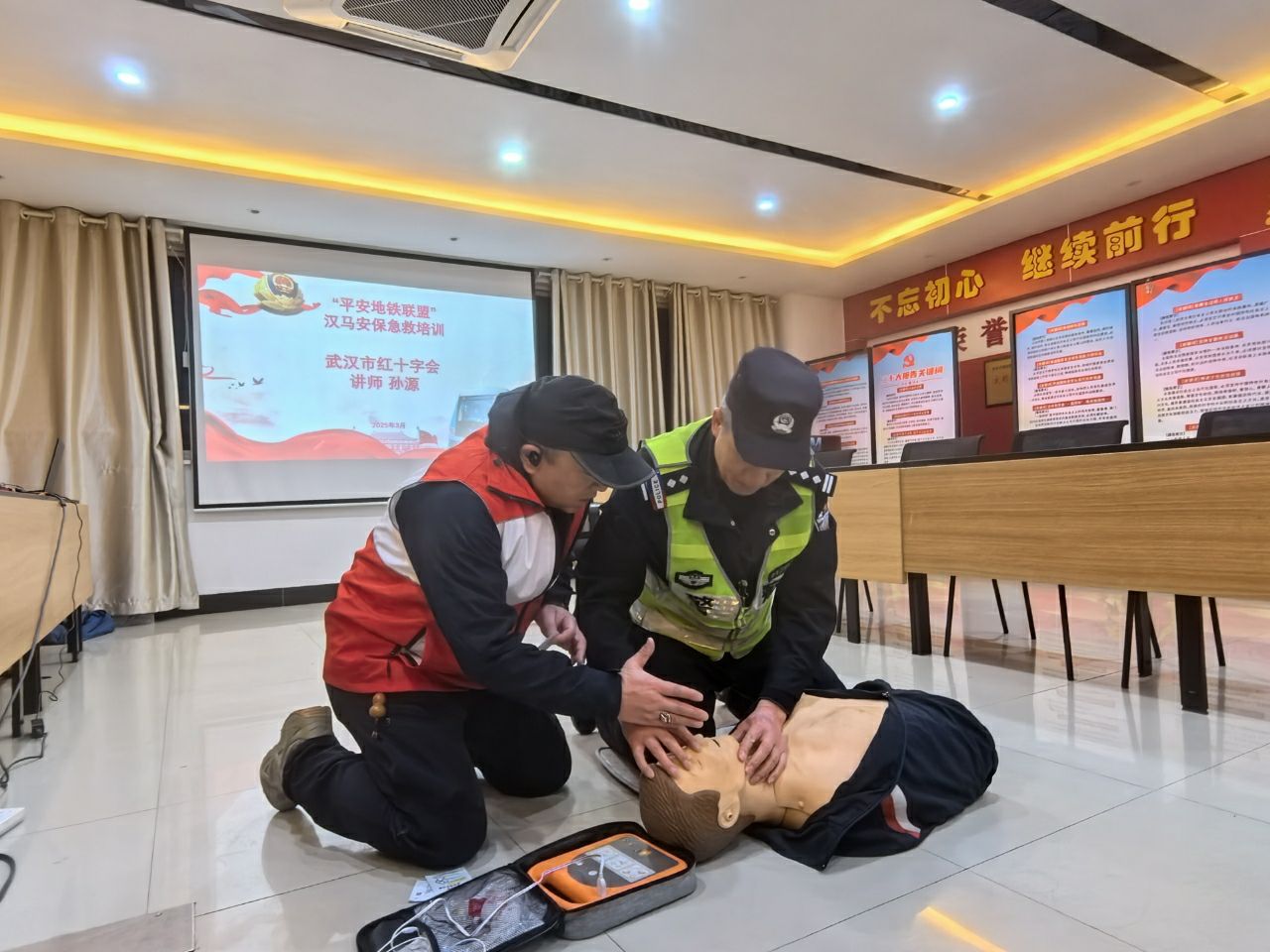 “每组按压30次,按压频率为每分钟100到120次,按压深度成人为5到6厘米。” 武汉市红十字会授课老师来到轨道分局为“汉马护跑团”成员进行心肺复苏应急救护培训,帮助护跑团成员熟悉掌握心肺复苏、自动体外除颤器(AED)的操作要点及流程,提升赛场遇见突发情况时的应急处置能力。“这次培训让我们能够更加自信地应对突发状况,及时有效地为身边的选手提供帮助。” 轨道交通管理分局快反机动队辅警张经广介绍。