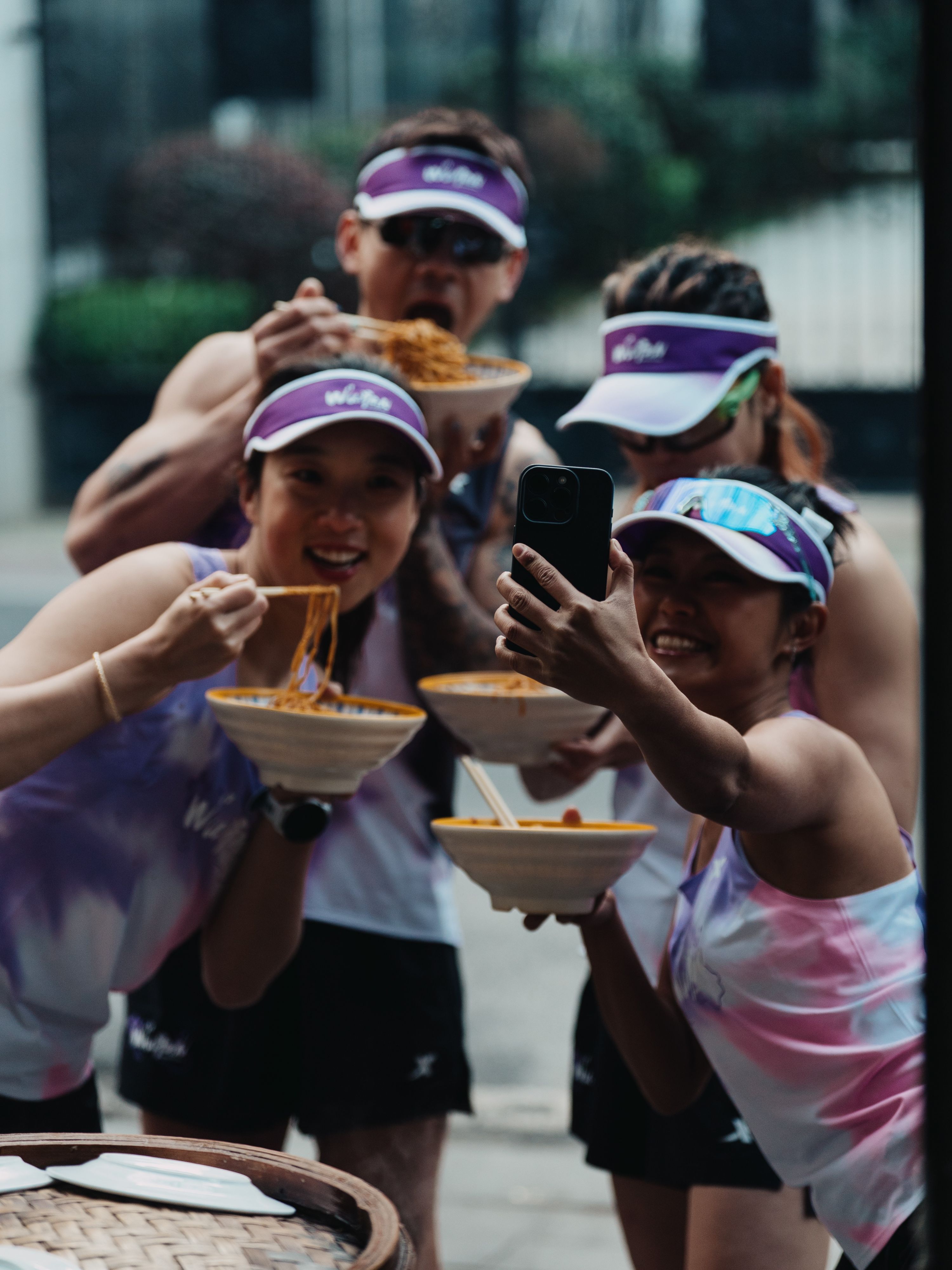 前脚还在江边迎着朝阳拉练,后脚就挤在街边小摊分享刚出锅的鸡冠饺,又或是钻进咖啡馆交流穿搭心得。总有成员在网上晒出周日的治愈九宫格:集体热身时的抓拍、冲过终点时老队友的击掌、咬下酥脆糯米包油条的瞬间,都构成了独有的“仪式感”。