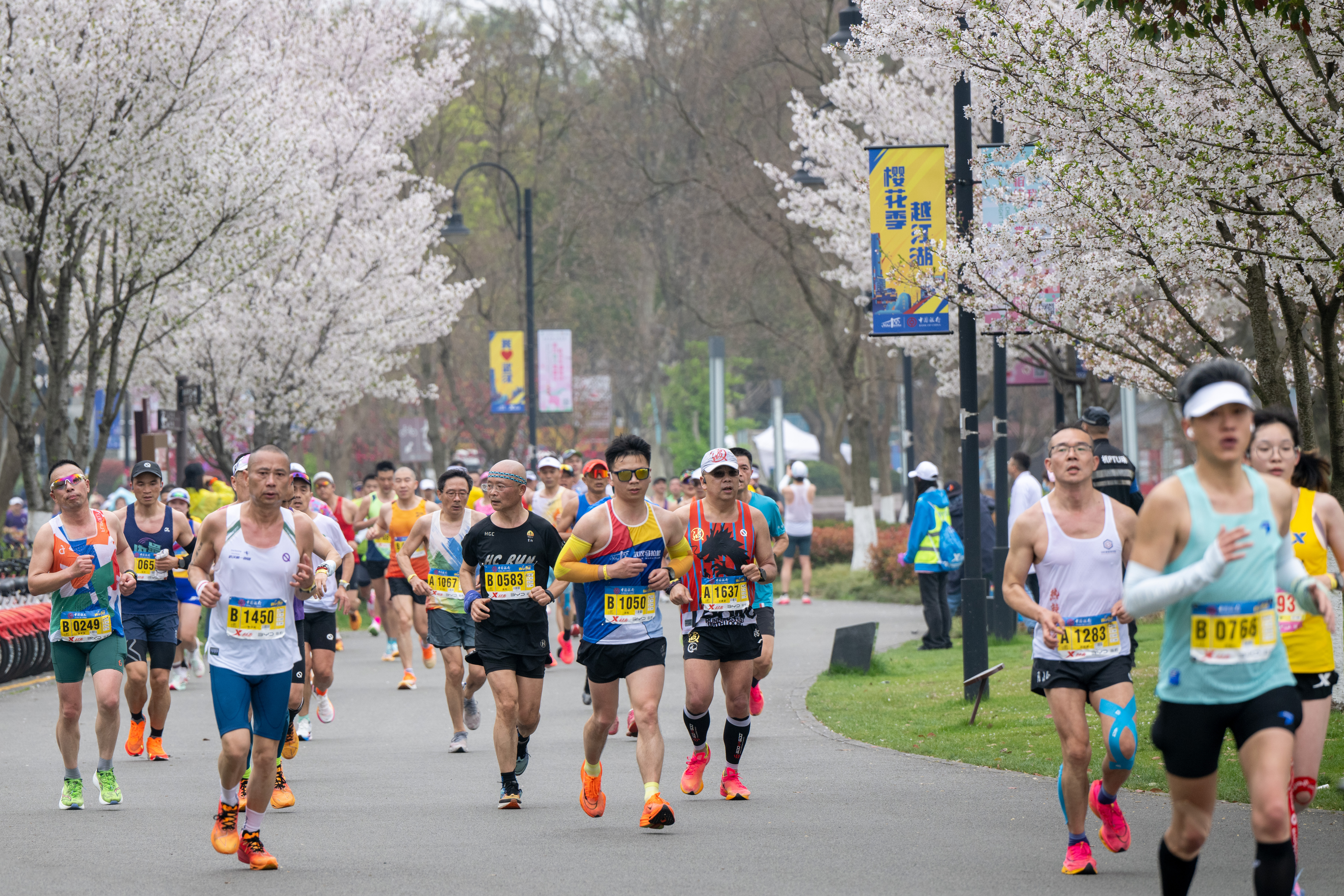选手们跑在汉马东湖赛道,沿线还可邂逅许多不同种类的春花。西家 摄