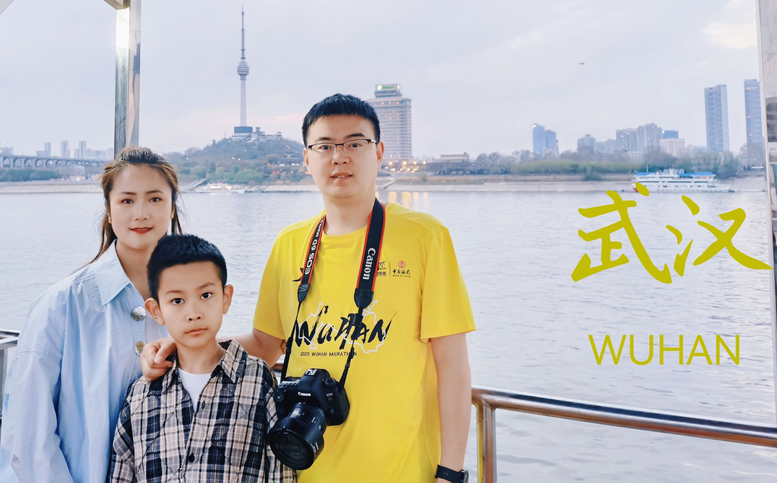 李世杰一家人乘坐轮渡游览长江。受访者供图