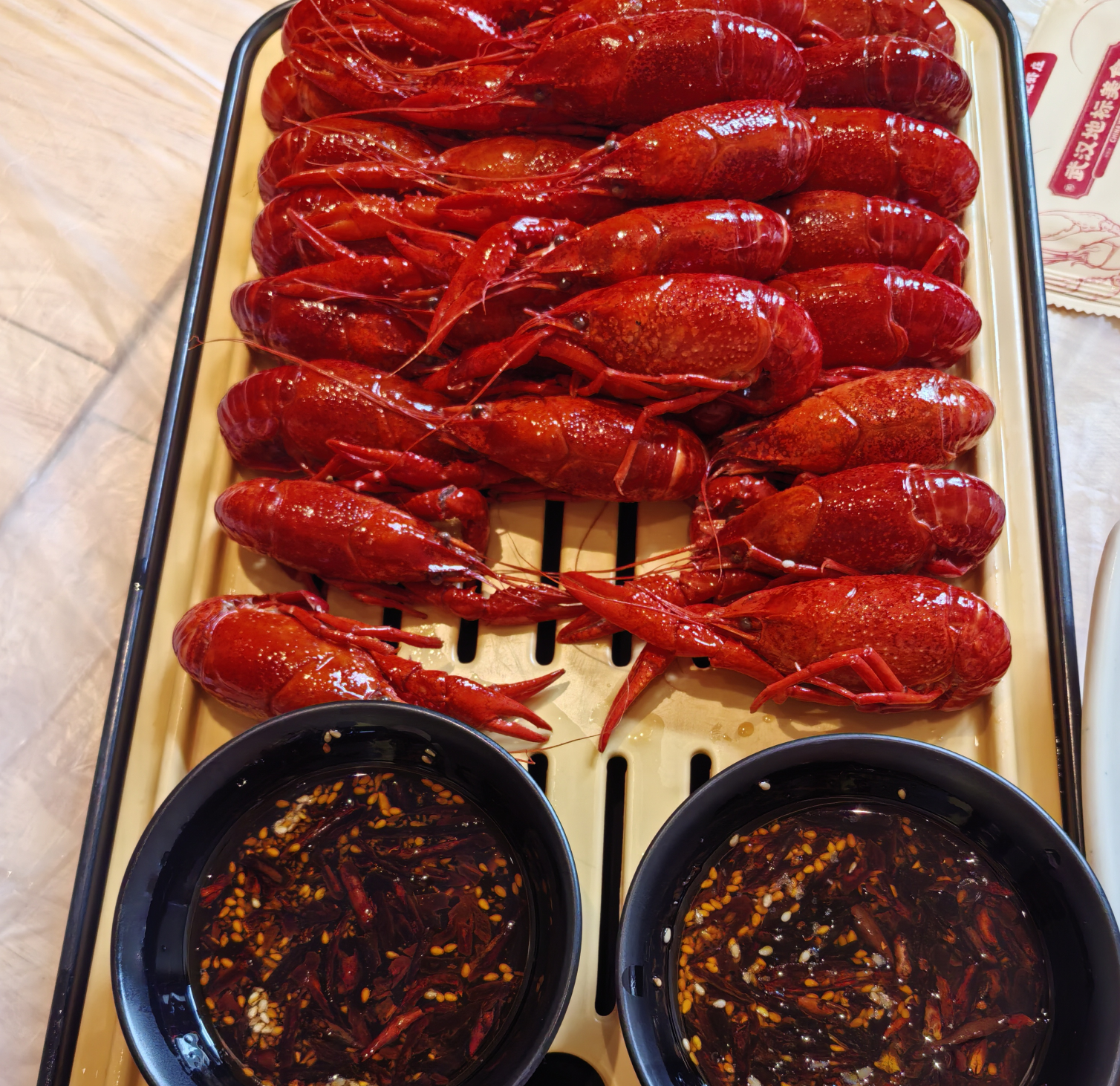 点上几盘小龙虾,鲜甜的虾肉搭配浓郁的汤汁,吃起来十分过瘾。吃小龙虾要两只手齐上阵,“就拍了这一张照片。”跑友易交红笑着说。