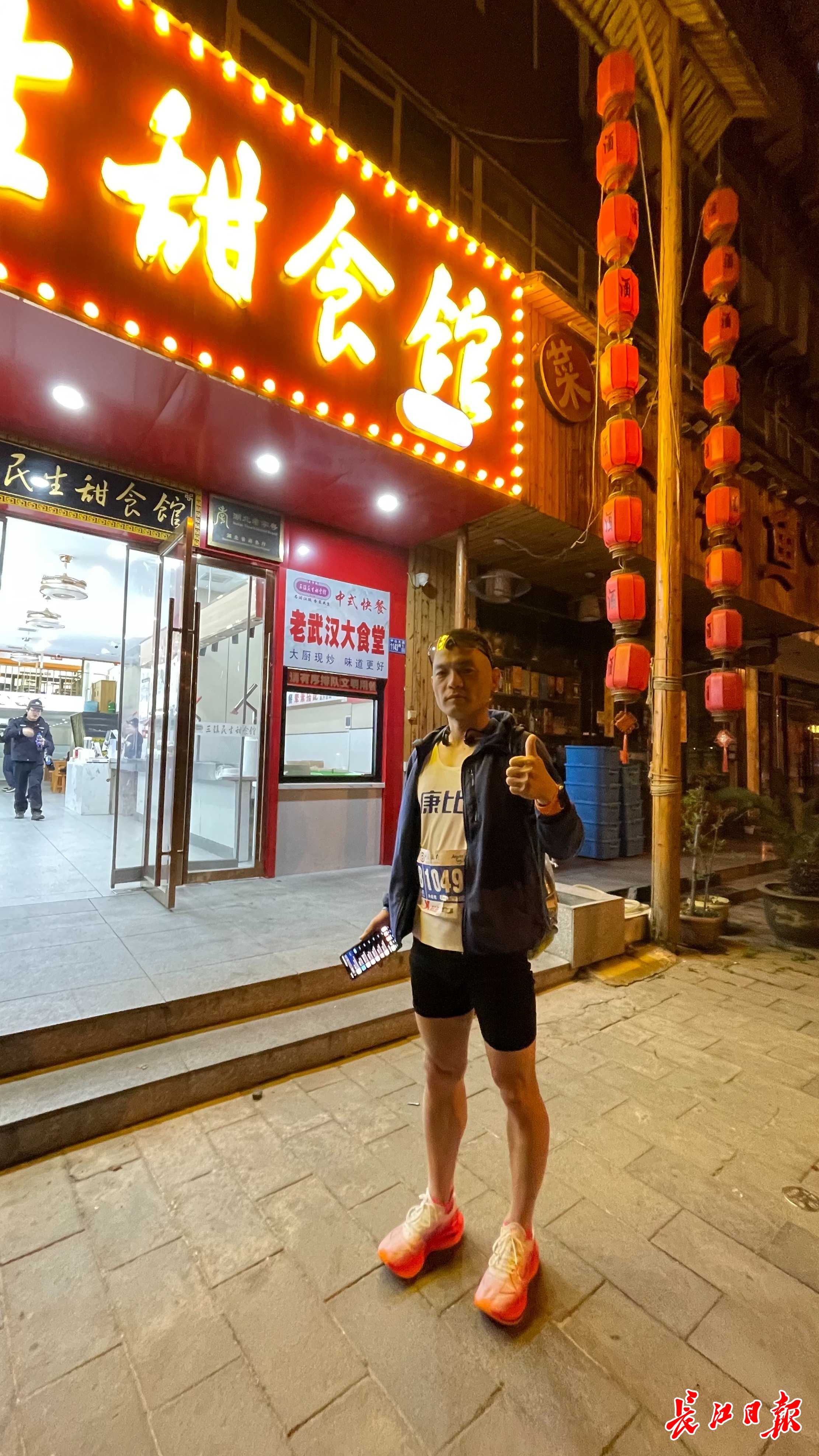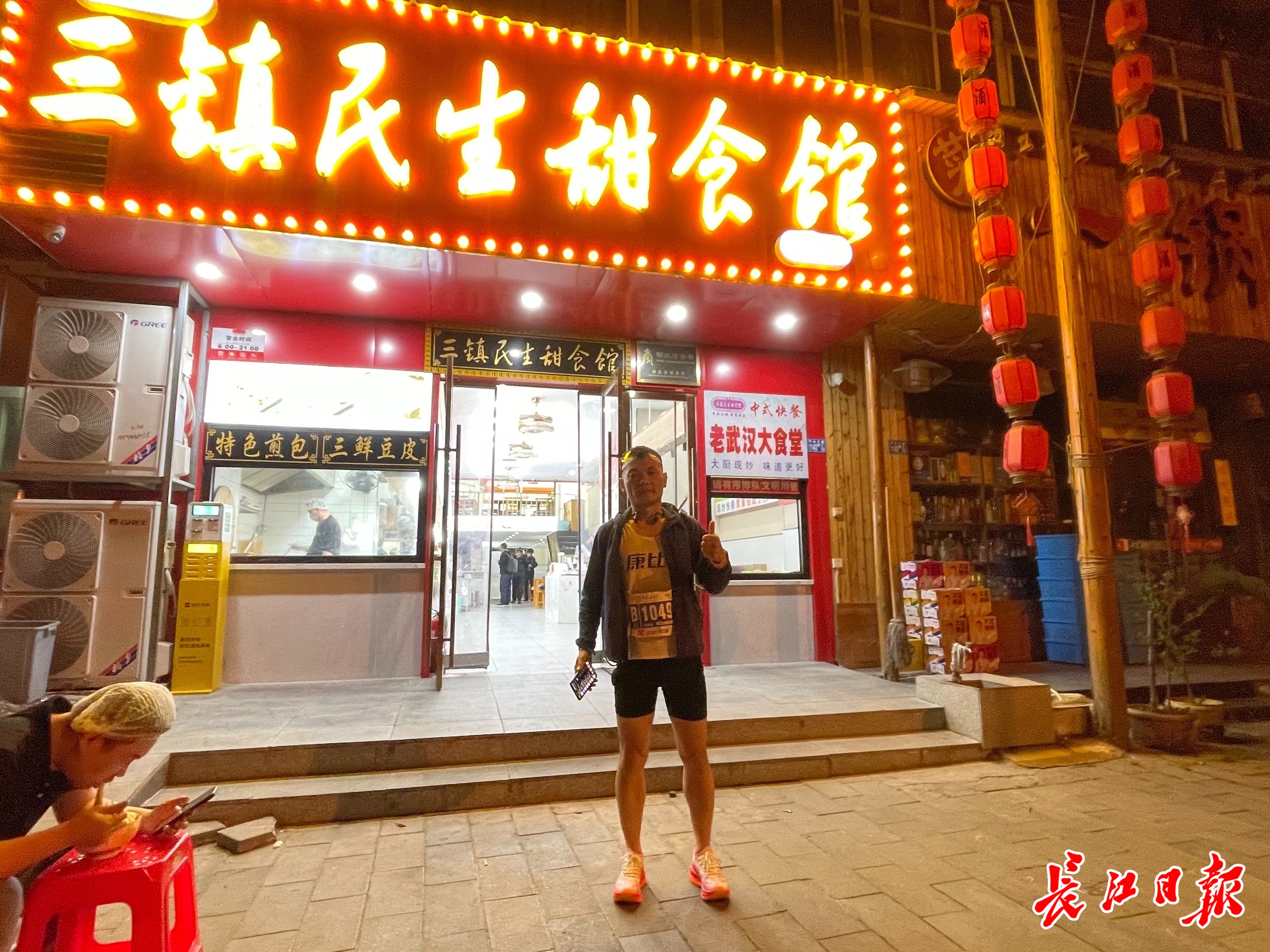 “今天凌晨4点半就起来了。”孙金柱住在黄埔大街附近的一家酒店,在武汉这几天,除了旅游就是沿线熟悉比赛线路。比赛当日,他很早就起床,叫了辆车开到三阳路起点入口附近,还没进场,就看到一家三镇民生甜食馆,进去过个早。“在武汉,吃早饭叫过早,有意思。”