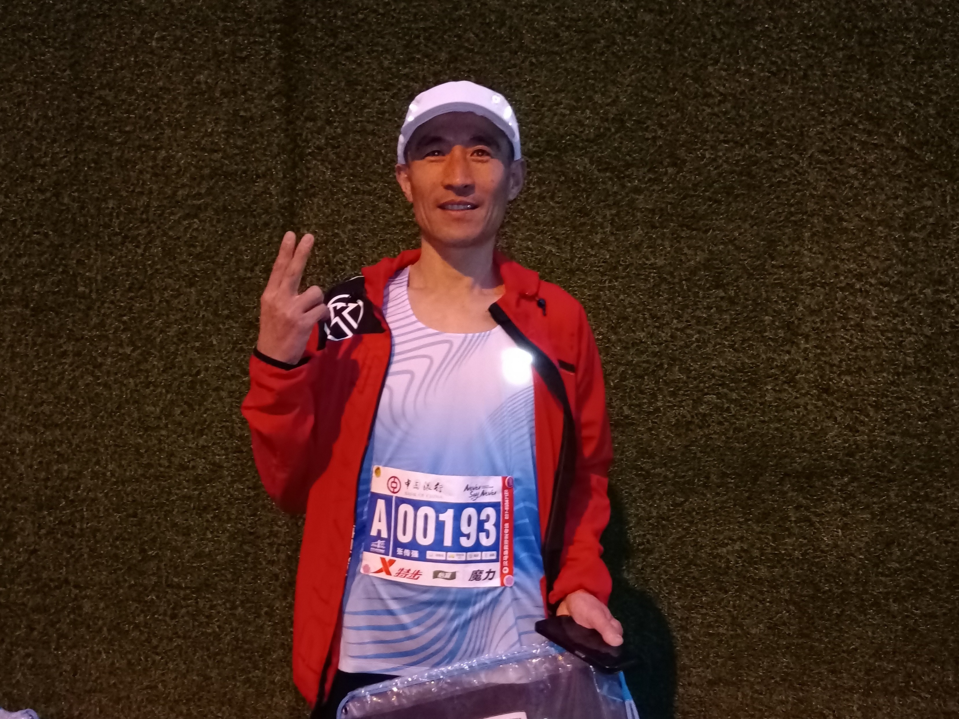 今年43岁的张传强是山东临沂人,是一家装修公司的负责人。他说,五年前,为了锻炼身体,他爱上了马拉松运动。参加马拉松运动以来,他的身体素质增强了,也获得了很多快乐,还结识了一批志同道合的跑友。截至目前,他已在山东、江苏、重庆等地一共参加了12场马拉松全马比赛。