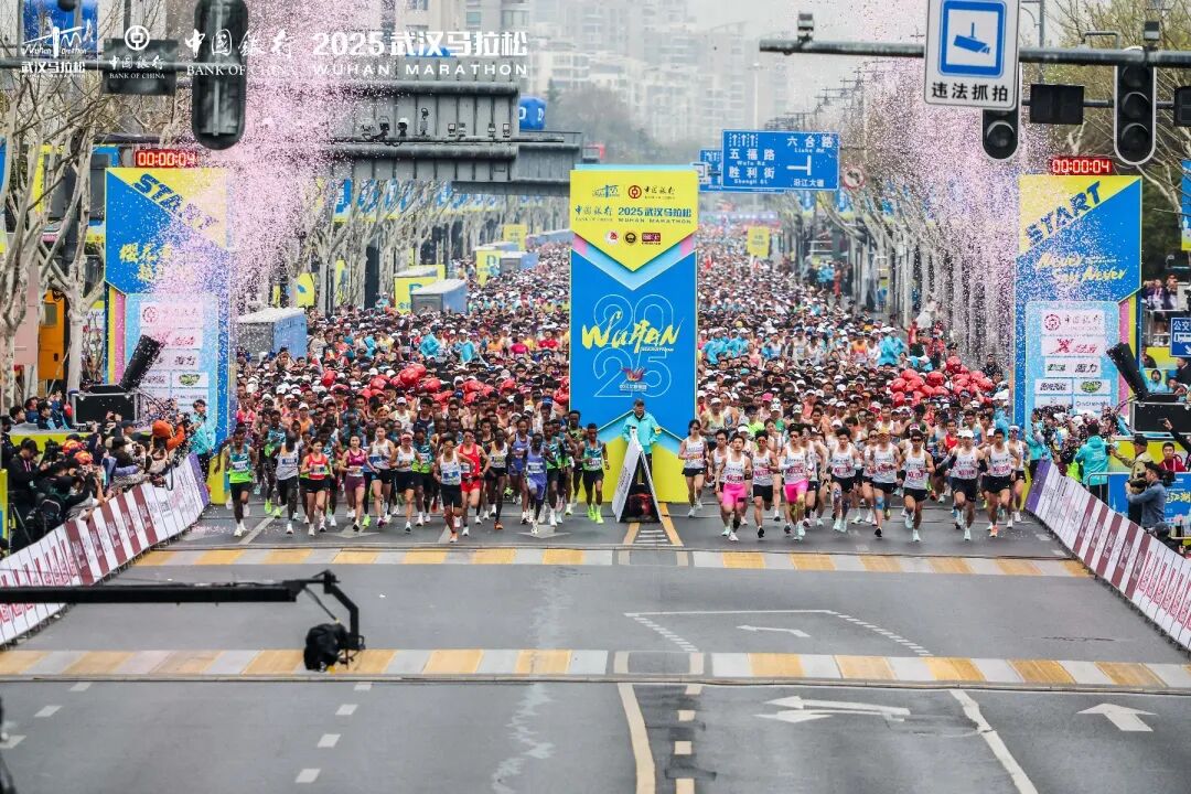 3月23日7时30分,2025武汉马拉松鸣枪起跑,4万名的参赛选手一起在江城武汉奔跑。