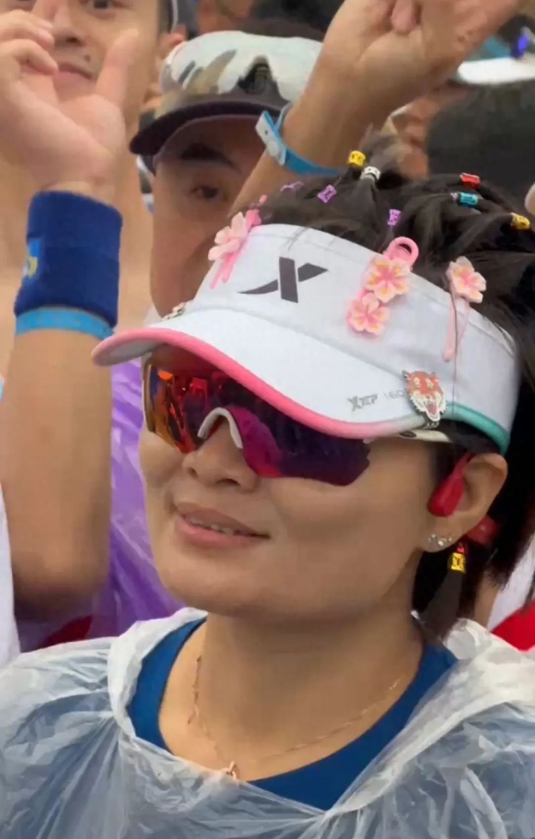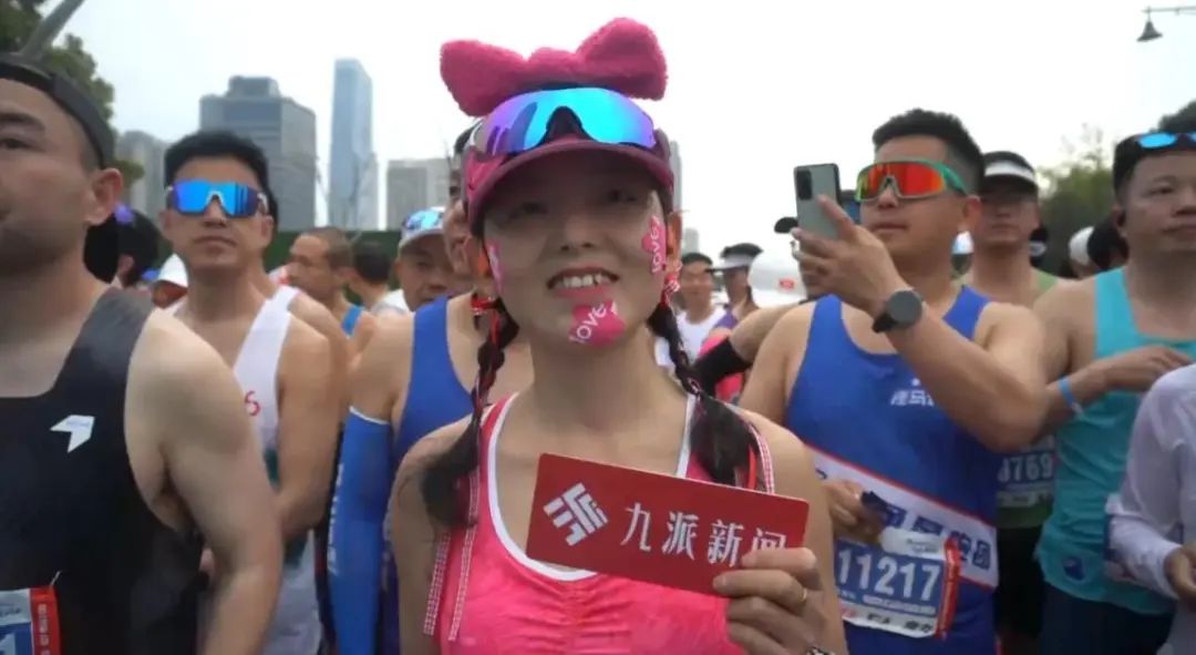 一名在脸上贴了樱花贴纸的跑者告诉记者,她来自安徽合肥,是一名老师,马拉松是她的运动爱好之一。因要参加汉马,她特意在脸上贴上樱花的标志。