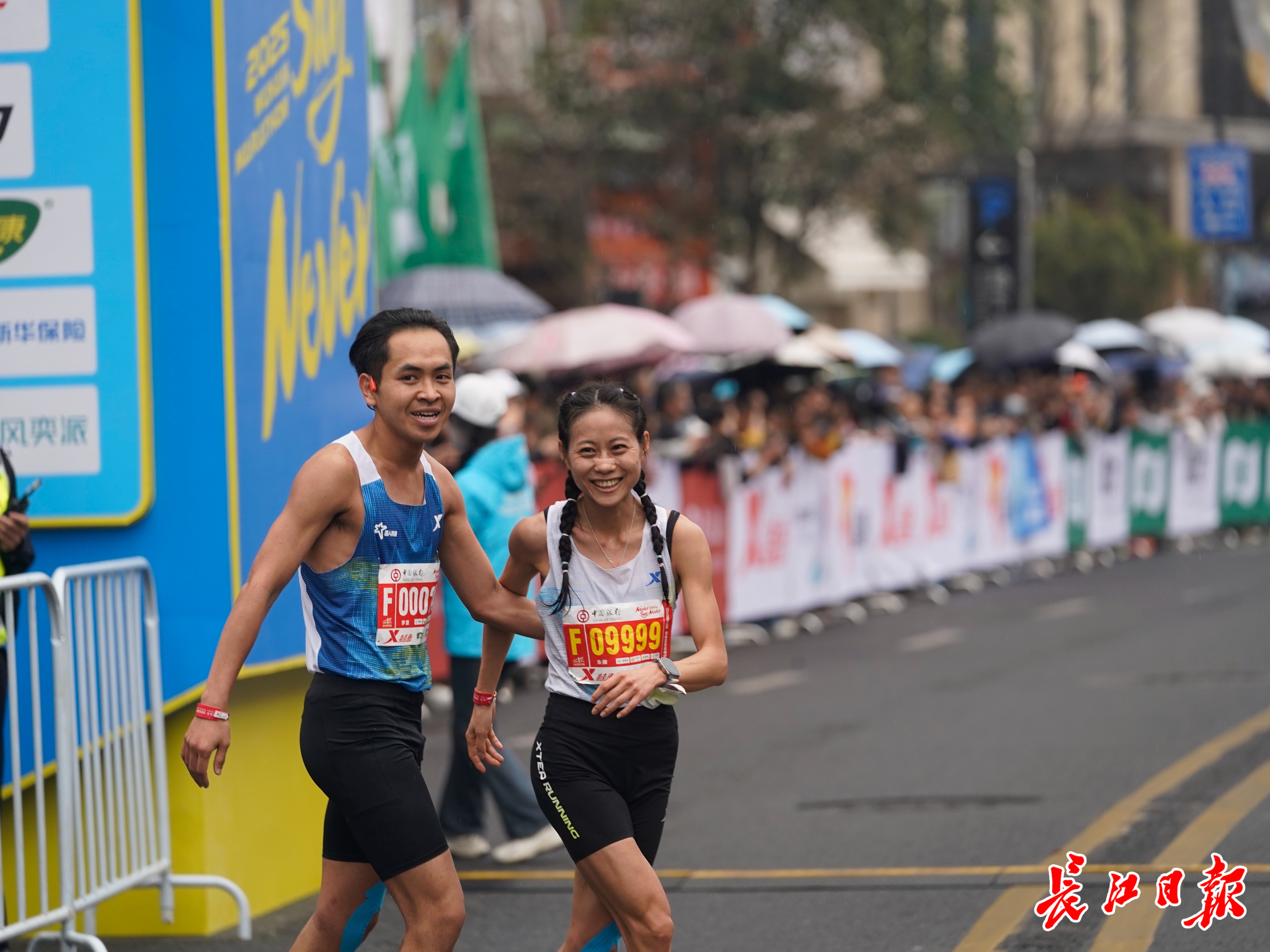 1小时14分32秒,随着F09999号选手朱卿撞线,2025年武汉马拉松半程项目女子冠军诞生。过线后,朱卿和与她一同完赛的男友罗源相拥。一起跑一次汉马是两人心高气傲的约定。按照计划,两人将在今年成婚,开启人生的“下半场”。