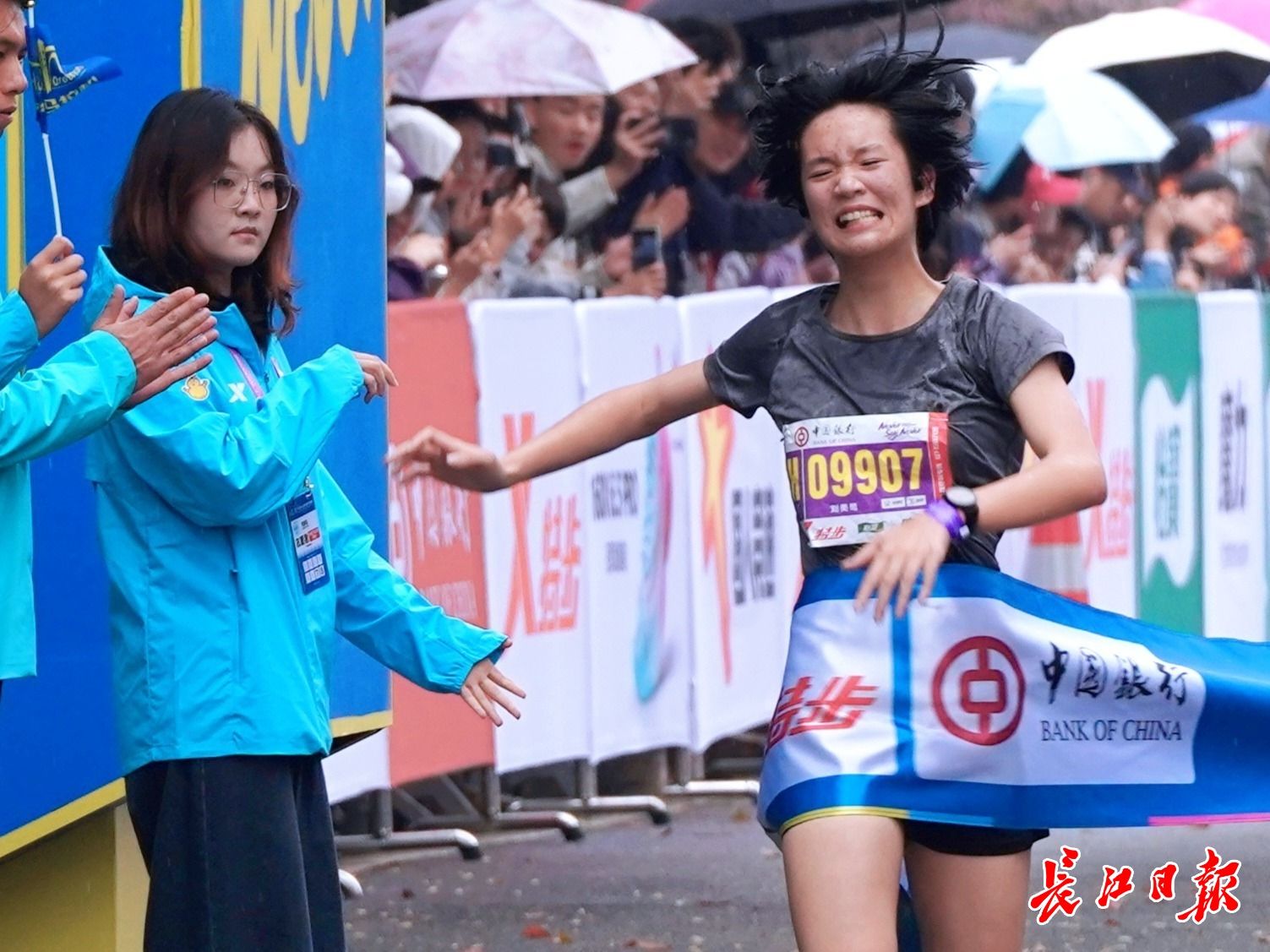 刘美鸶与汉马健康跑男子组冠军张谷轩均来自湖北武昌实验中学田径队。刘美鸶赛后说,自己练习跑步才两年时间,之所以能够首次参赛就获得冠军,最大的动力在于学姐林诗妍,她是2024年武汉马拉松健康跑女子组冠军。“她不仅跑步厉害,去年还考上了理想的大学,绝对是我追赶的目标。”