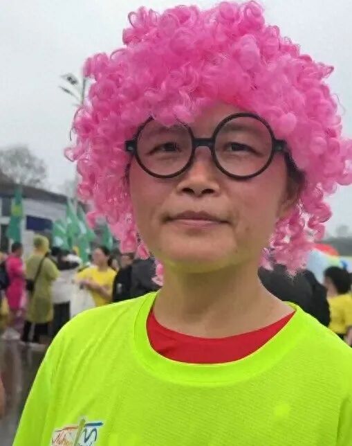 带粉色爆炸头的跑者。图/九派新闻记者 付冰洁