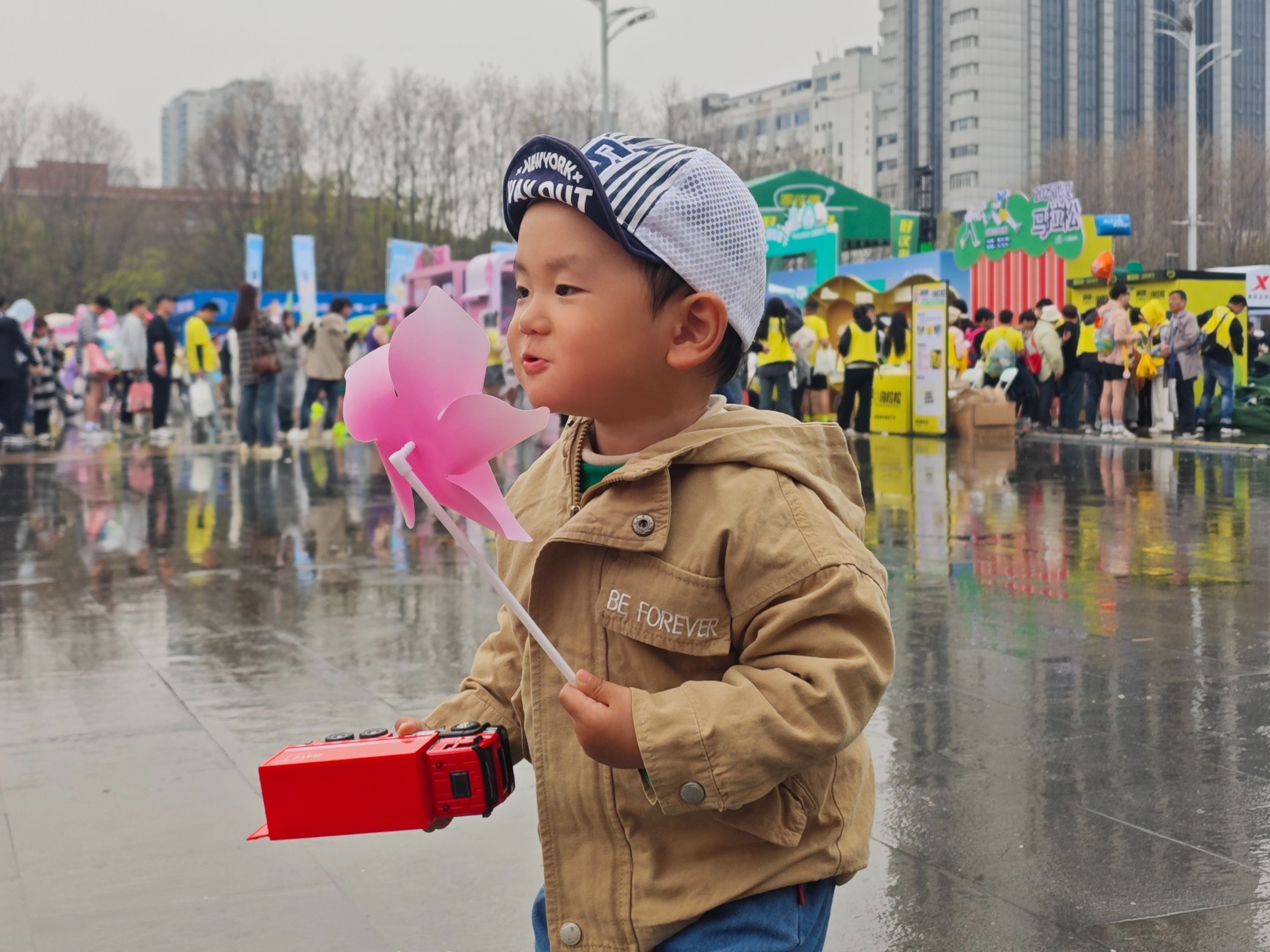 长江日报大武汉客户端3月23日讯(记者李慧紫)3月23日上午10时许,在健康跑的终点,两岁的仔仔拿着一个樱花样式的风车,正鼓着脸蛋用力地吹着风车转动,萌态十足。身旁是他的爸爸和奶奶,三人正等着参赛的妈妈。