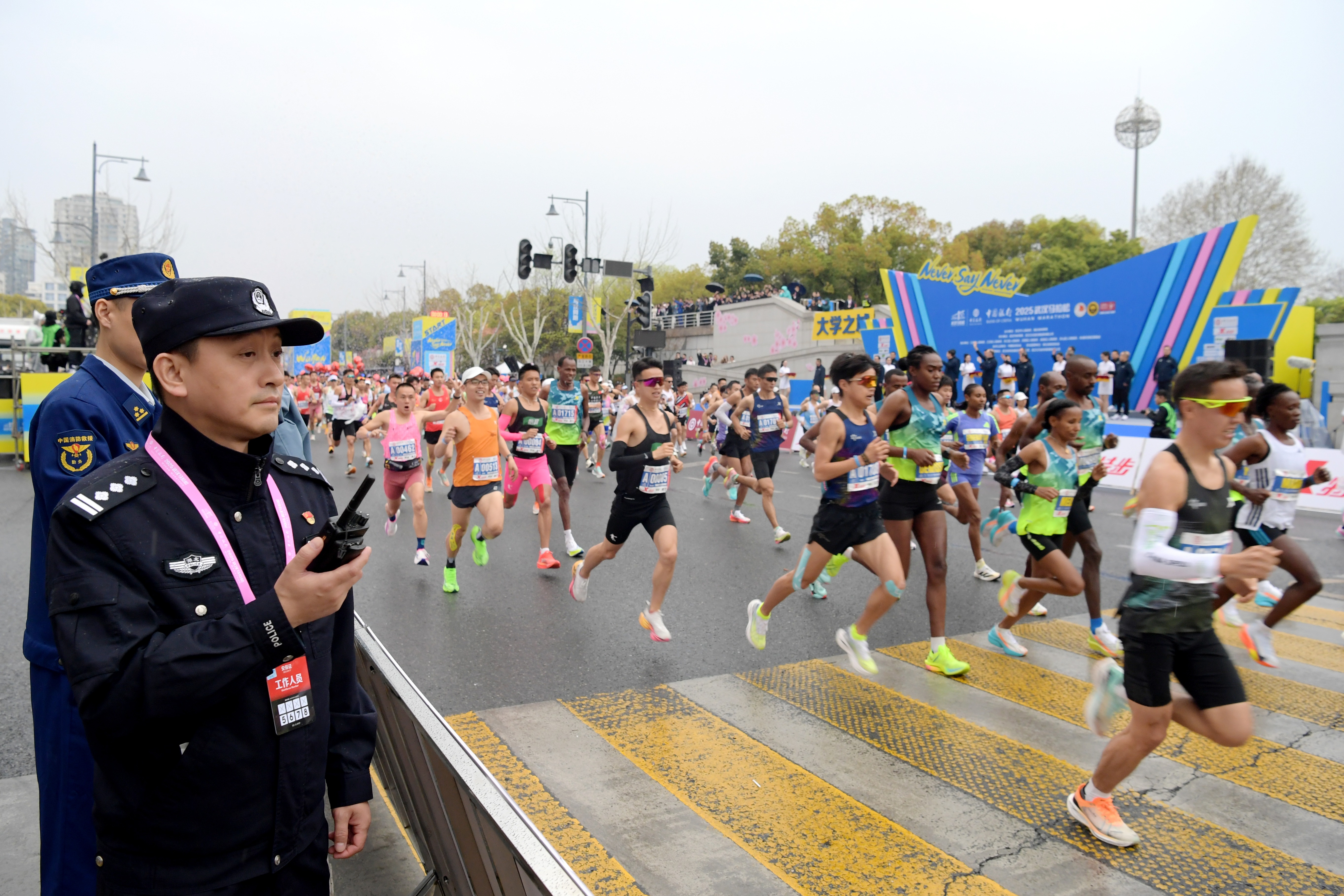 此次活动规模大、线路长、岔路多,面对4万参赛者的集结、3次分枪起跑的复杂流程,武汉市公安局江岸区分局实行全封闭管理,加强制高点控制守护,严防高空丢物等事件发生;提前在户外广告大屏上滚动播放交通管制公告视频,并在各大媒体平台发布《交通管制公告》,提示区域内群众减少出门、提前迁移车辆,避峰出行;赛道沿线每隔30米设置3人巡控,防止无关人员进入赛道,确保了起跑仪式及前段比赛顺利举行。
