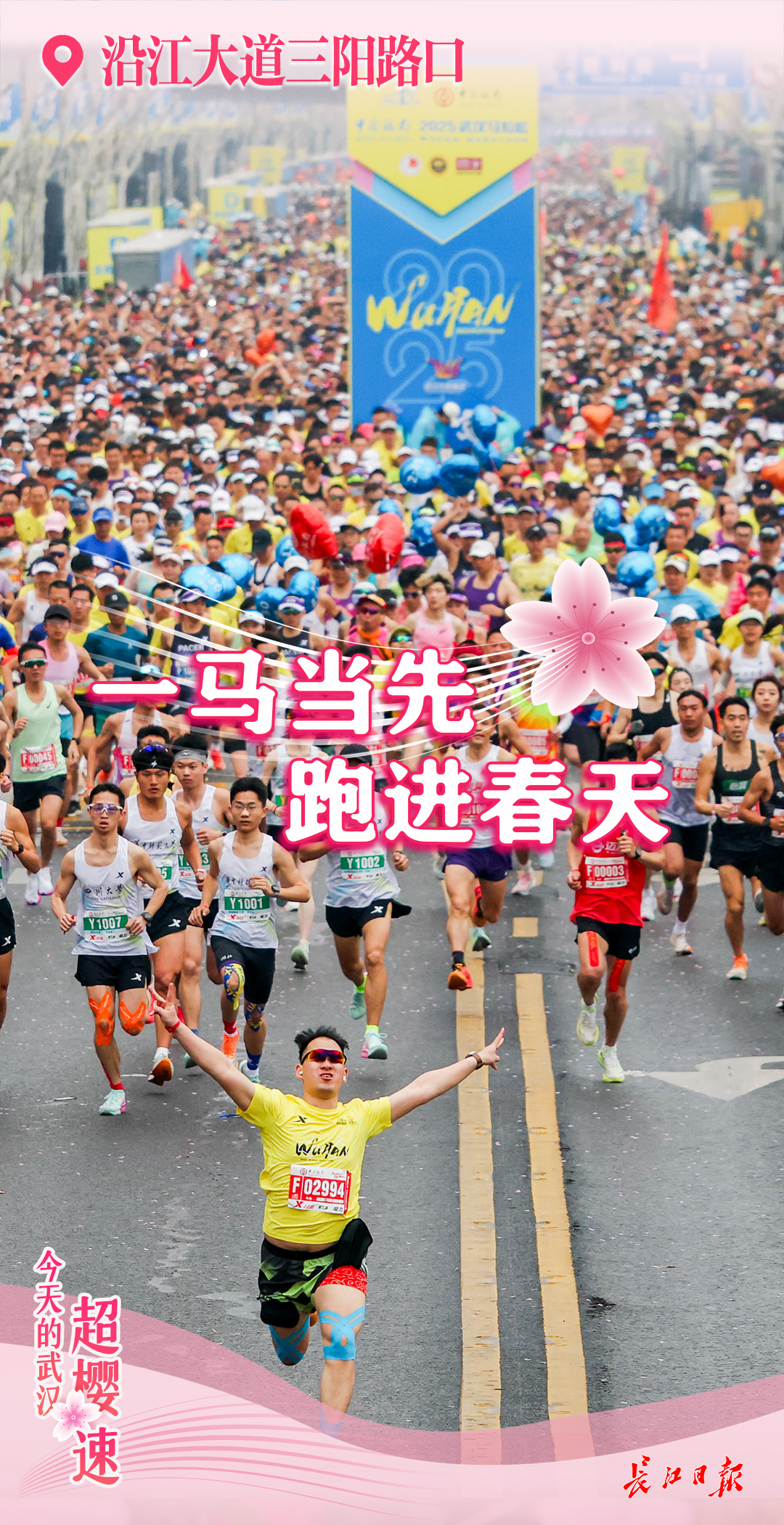 樱花季 越江湖|这!是!今!天!的!武!汉! ©原创 2025-03-23 12:26 0 当汉马遇上武汉绝美樱花季 冲上热搜,全国人都知道今天的武汉太美了! 42.195公里的热烈 化成“一城两江 三镇四桥五湖”的浪漫, 一大波“超樱速”美图来袭! ▼ “就汉马这个路线一跑, 谁能不爱上武汉?” 热情又浪漫的汉马 定格了你的人生照片, 快来认领! ▼ 浪漫与激情的武汉, 太绝了! (摄影|记者胡冬冬 高勇 史伟 武汉马拉松 设计| 刘岩 视频| 摄影记者詹松 九派新闻记者符程郡 制作张小莉 制作| 喻鑫) 【编辑:符樱】