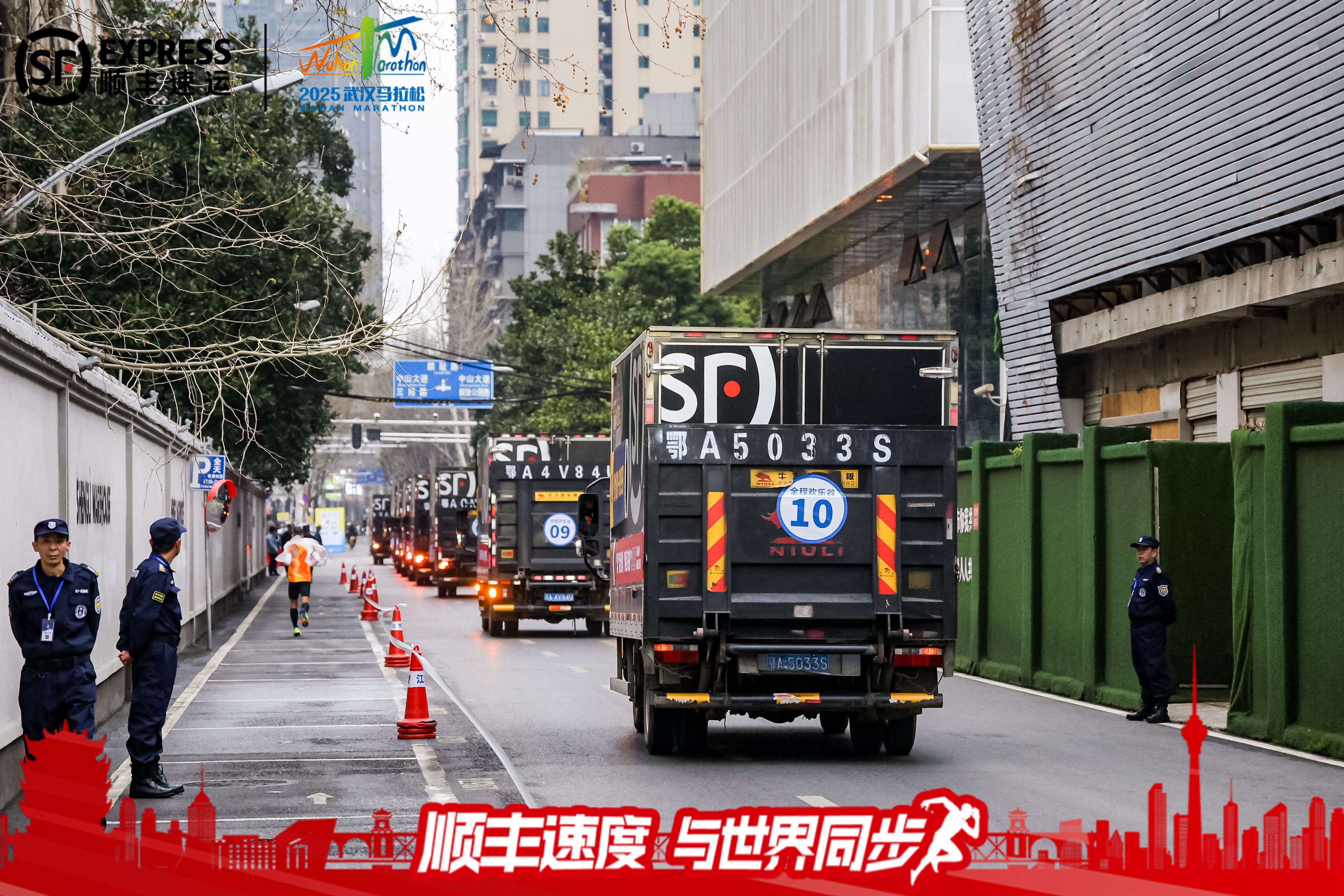 针对半程和全程马拉松选手的存衣需求,顺丰创新推出“分区存衣+精准转场”服务。60台存衣车在起点按参赛号段分区排布,选手赛前根据指引快速完成存衣,车辆于发枪前15分钟关闭并转场至终点。完赛后,选手可凭号码布在终点“顺丰专区”直接取回包裹,实现“存衣无忧、领物无阻”。武汉本地参赛者何先生表示:“顺丰车辆标识醒目、流程清晰,赛后疲惫时能快速拿到衣物,体验非常贴心。”