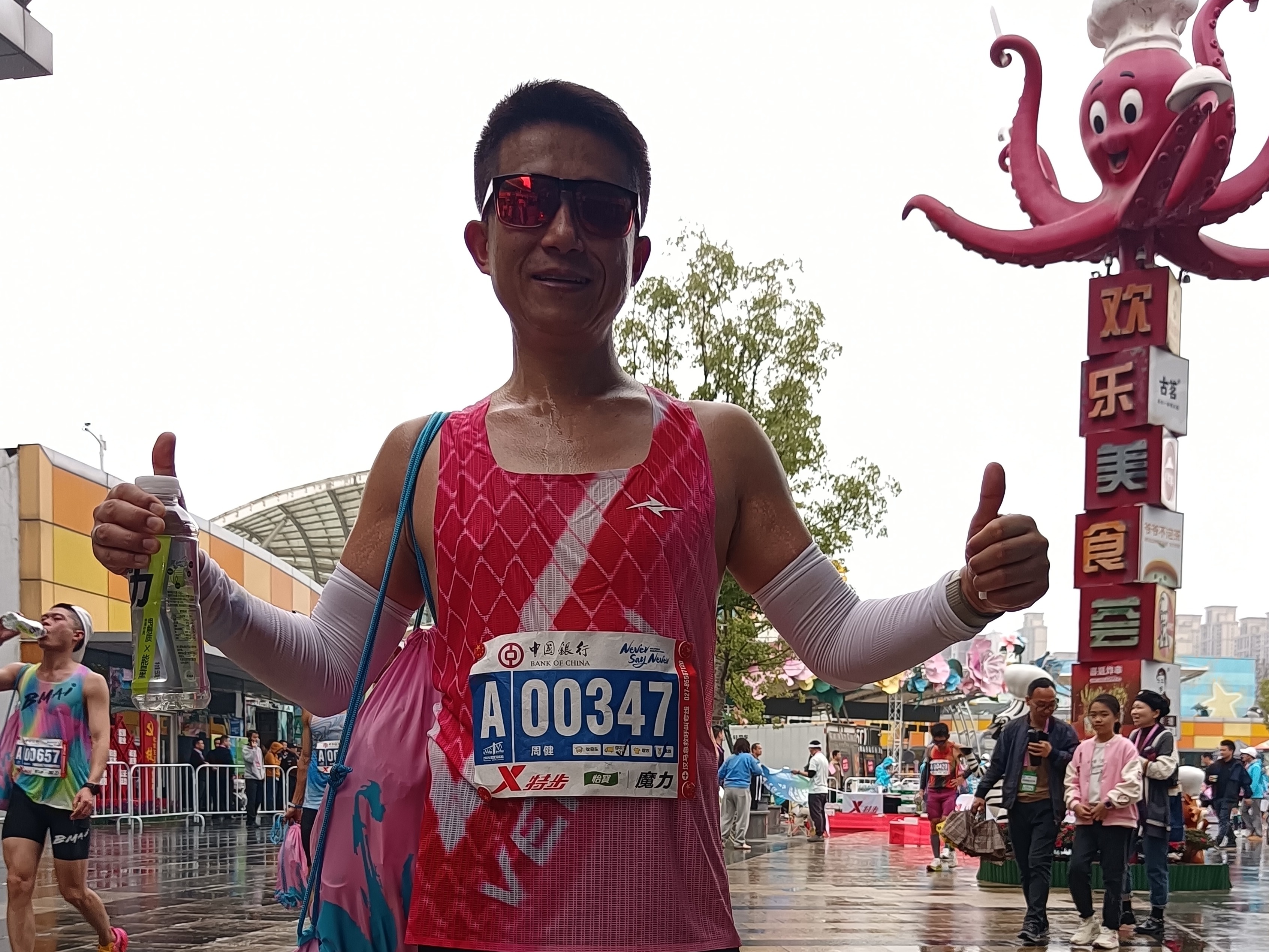 周健说,他从2019年开始参加马拉松运动。截至目前,他已在北京、河北、江苏、福建、湖北等地参加了30多场马拉松比赛。他一直渴望参加汉马比赛,于2024年底报名参加2025年的汉马比赛,幸运中签。