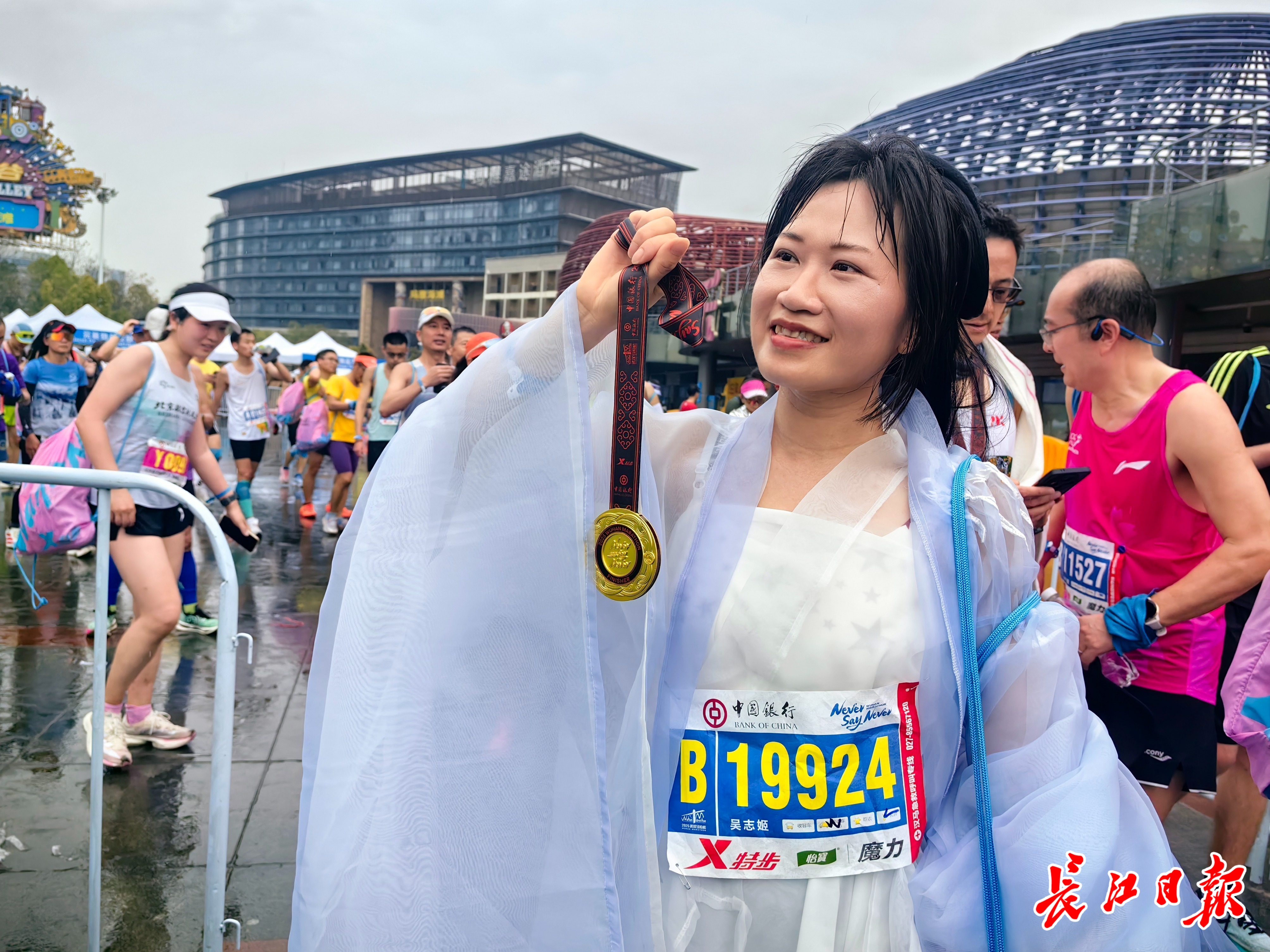 “赛道上的长江大桥、黄鹤楼、东湖、樱花,古香古色的完赛奖牌,都与汉服特别搭。”吴志姬说,这一次,她没想着出成绩,就是为了享受樱花赛道而来。沿路,她一边拍视频,一边发朋友圈,一边享受观众和志愿者的热情欢呼。
