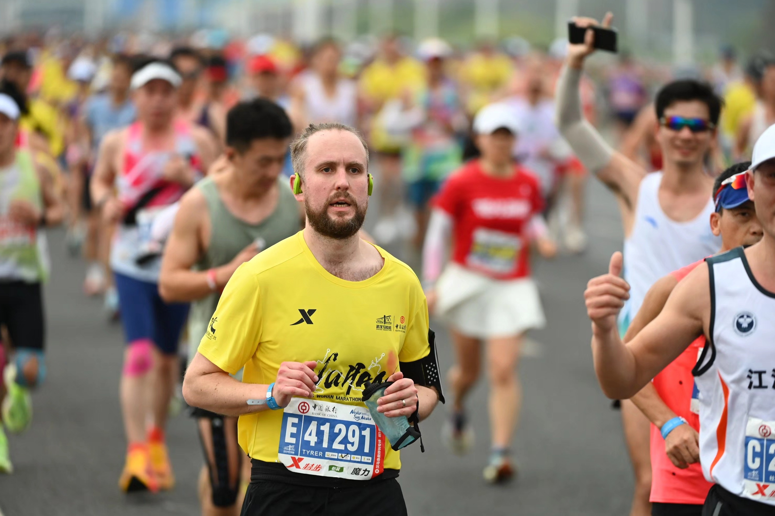 长江日报大武汉客户端3月23日讯(记者覃柳玮 通讯员唐文晶)23日,2025年武汉马拉松开跑,来自英国的选手托马斯是第二次跑汉马,他顺利完成全马比赛。