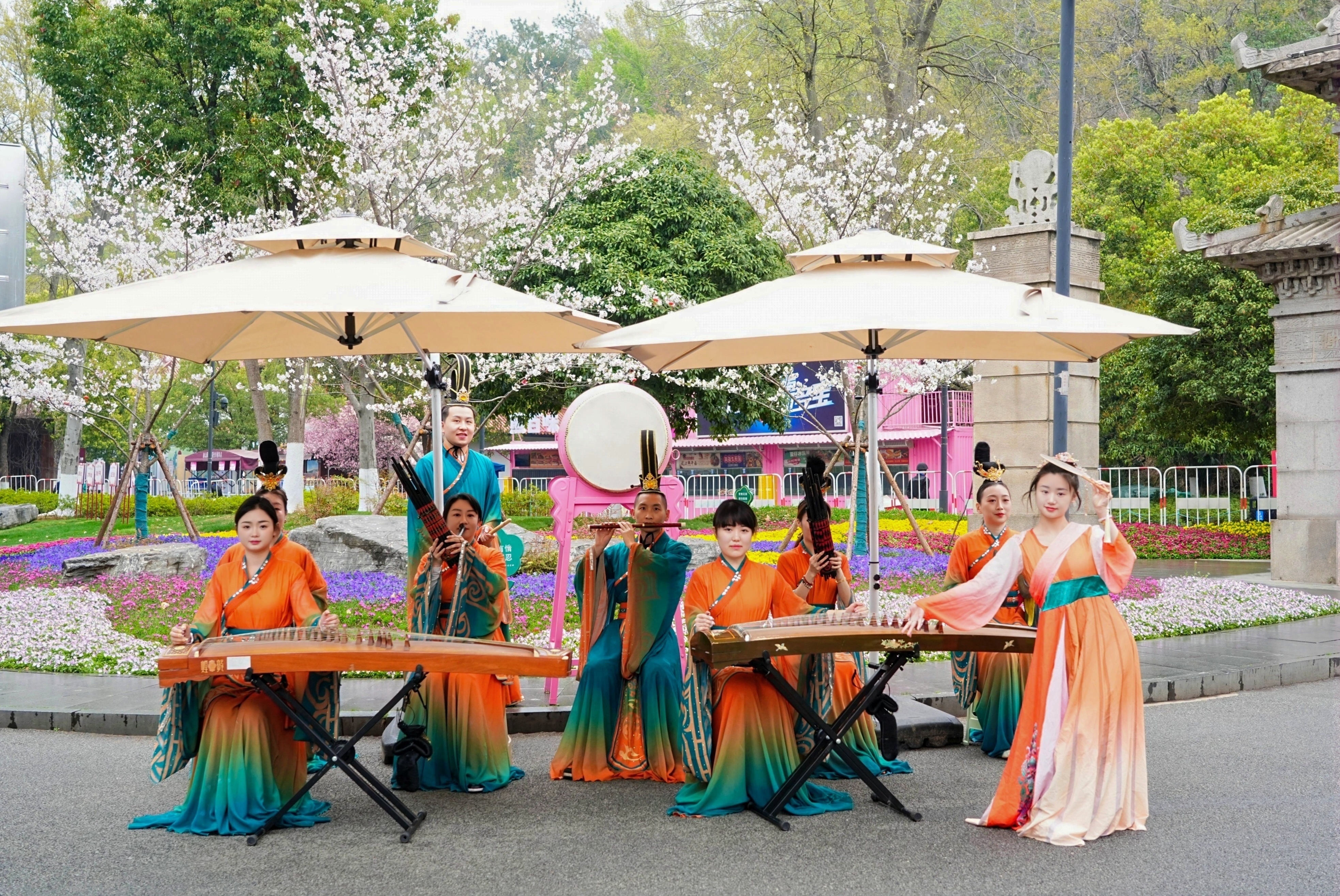 3月23日上午10时,东湖磨山北门传来阵阵金石之音,一群身着楚风长袍的编钟古乐团演员为疾驰而过的汉马选手奏响激昂乐曲,楚乐与加油声交织,衣袖翻飞间与马拉松赛道形成“古今交响”。