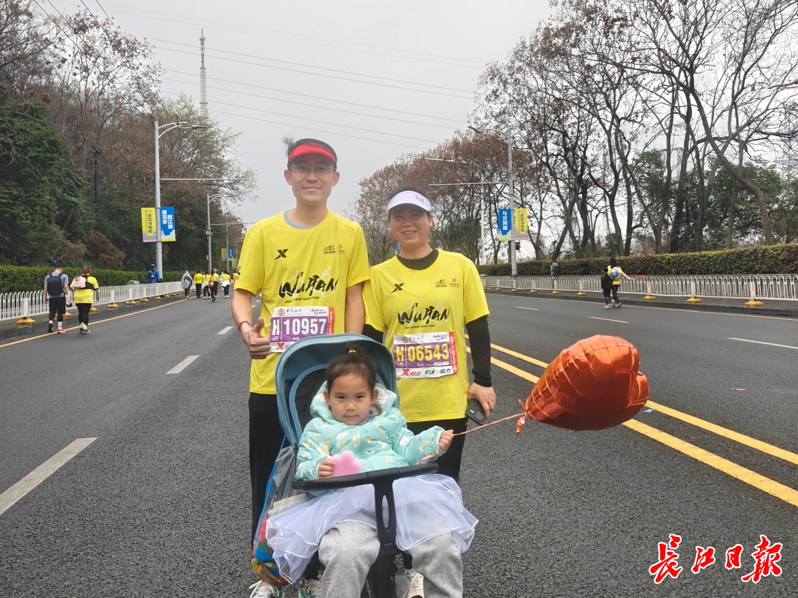 在樱花的陪伴下,汉马的赛道上热闹非凡。市民李先生推着婴儿车,一家三口在赛道上慢跑,孩子睁着大眼睛,感受着周围的热闹氛围。“第一次参加汉马,全家完赛就是胜利!”他笑着擦去女儿脸上的雨水。四位闺蜜边跑边自拍,相约在长江大桥合影打卡。银发跑者、轮椅选手、外籍运动员的身影不时掠过,他们用不同的姿态诠释着对马拉松的热爱。