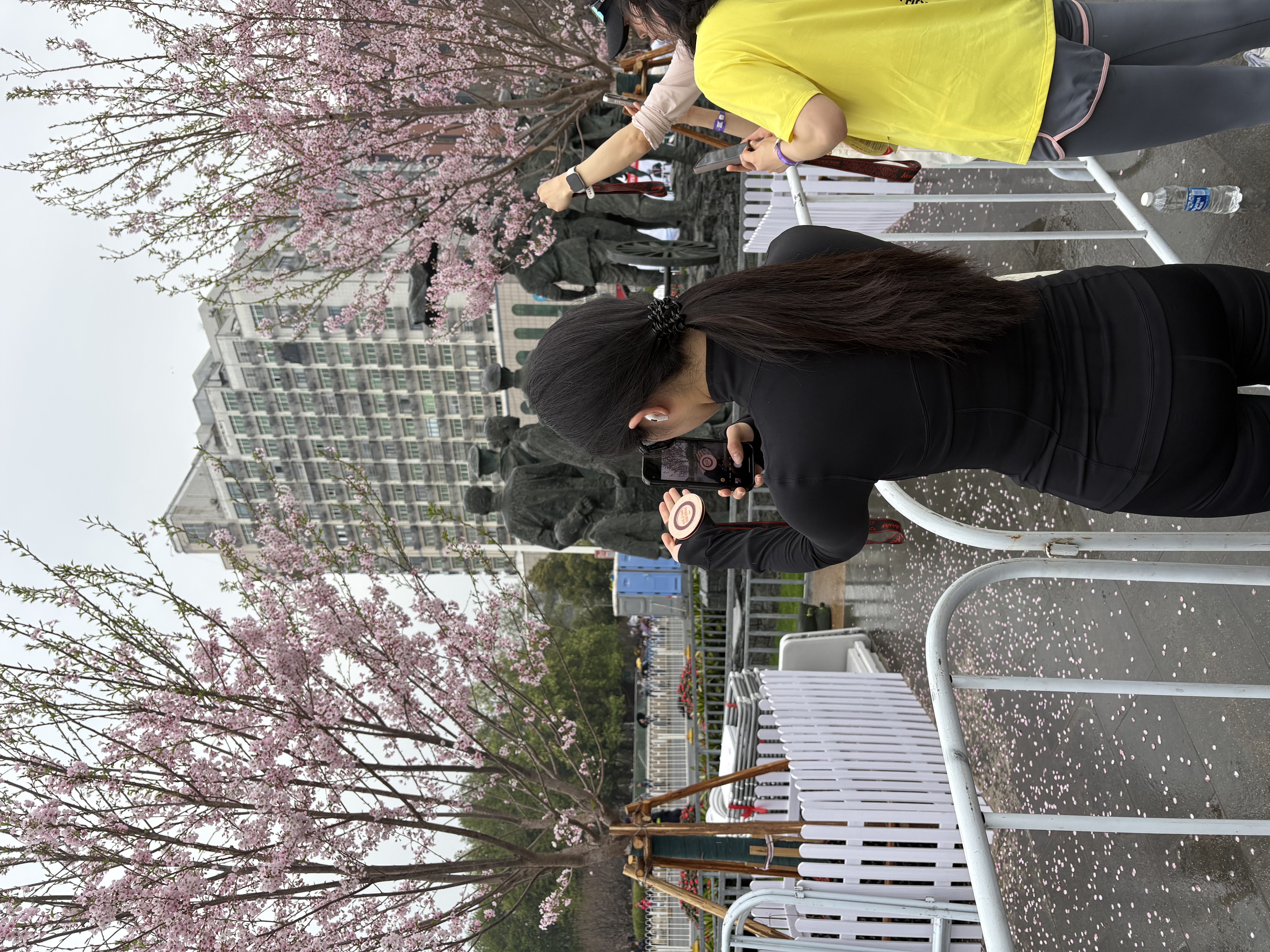 长江日报大武汉客户端3月23日讯(记者刘晨玮 实习生王昱麟)“等下可以发个美美的朋友圈喽!”23日,完成13公里跑项目后,武汉选手胡怡在首义广场的樱花树下举着奖牌用手机拍照。记者看到,这里成了选手完赛后必来的打卡点,大家举起手机,希望给独一份的奖牌和缤纷樱花留影。