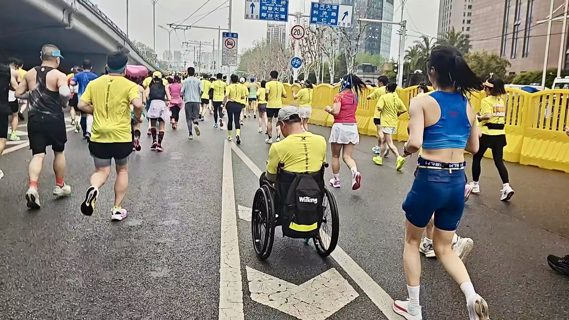赵永德在赛道上拍下坐着轮椅的参赛者。(视频截图)