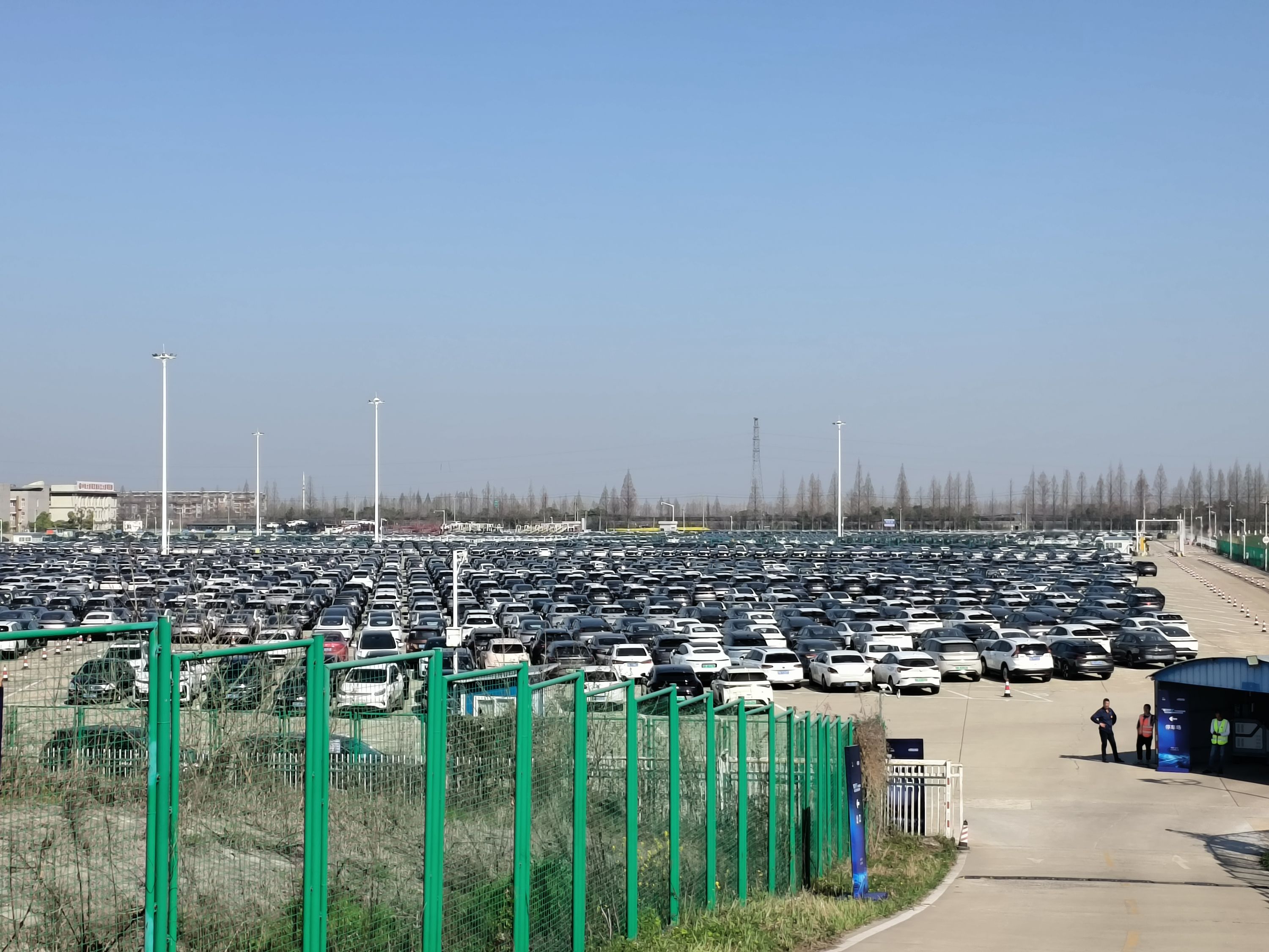 汉南港8万平方米的库场里,待交付车辆整装待发。记者徐丹 摄