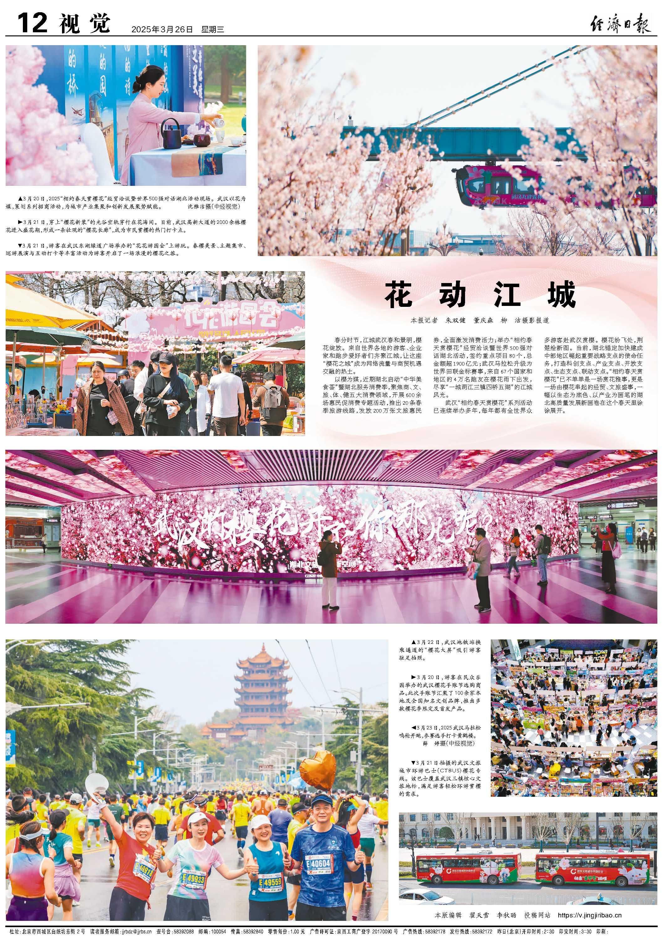 以樱为媒,近期湖北启动“中华美食荟”暨湖北服务消费季,聚焦商、文、旅、体、健五大消费领域,开展600余场惠民促消费专题活动,推出20条春季旅游线路,发放200万张文旅惠民券,全面激发消费活力;举办“相约春天赏樱花”经贸洽谈暨世界500强对话湖北活动,签约重点项目80个,总金额超1900亿元;武汉马拉松升级为世界田联金标赛事,来自67个国家和地区的4万名跑友在樱花雨下出发,尽享“一城两江三镇四桥五湖”的江城风光。