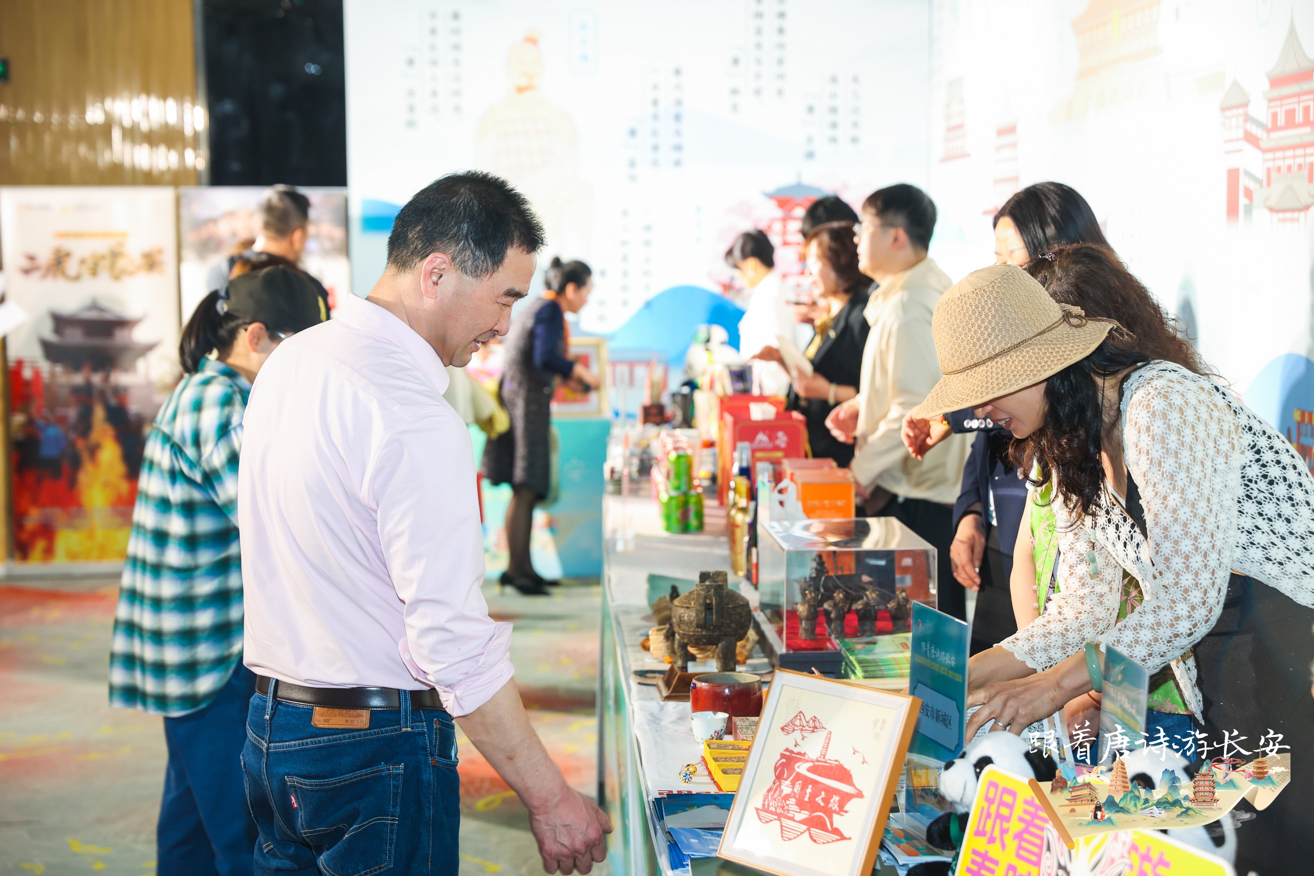 活动现场,西安旅游推广大使闻卿带来了精彩的主题推介《唐诗里的长安》,以经典诗句为引,串联起西安十三朝古都的厚重历史与今日文旅新貌。西安文旅宣传片《舞韵唐诗·长安十二时辰》里,元宇宙西安文旅数字虚拟人“长安”带领大家在虚实交织中感受“一步一诗,一景一画”的盛唐气象。在“唐诗沉浸空间”,西安文旅展示区以“祖脉秦岭,诗意长安”为背景,西安半坡博物馆、西安事变纪念馆带来的人面鱼纹盆立体冰箱贴、西安事变旧址茯茶套盒等西安特色文博文创吸引了大家的目光。古风唐诗书签墙、秦腔扮相演员也引得大家合影留念。西安市投资合作局详细解读了西安投资环境情况,展示了西安在基础设施建设、数字经济、新兴产业等领域的巨大潜力及广阔前景。