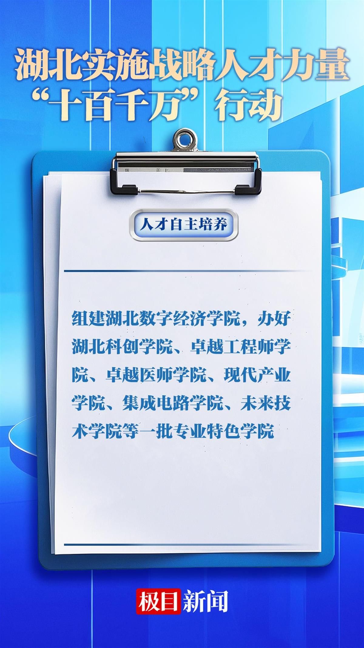 发布会上介绍,湖北将持续加大高层次人才培育引进力度、学科专业建设力度、人才自主培养模式改革力度。将组建湖北数字经济学院,办好湖北科创学院、卓越工程师学院、卓越医师学院、现代产业学院、集成电路学院、未来技术学院等一批专业特色学院。