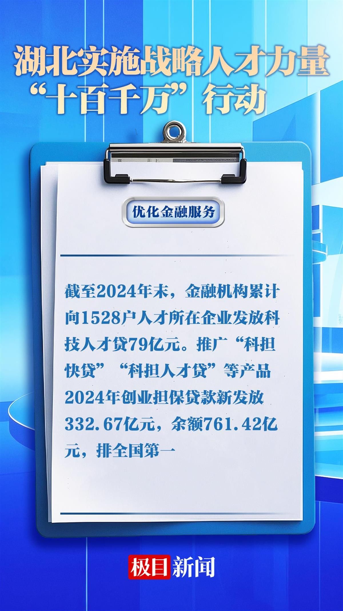发布会上介绍,近年来,省委金融办围绕股权投资、债权融资、资本市场募资等方面,多措并举,努力为人才创办企业提供全链条、全生命周期的金融服务,着力推动基金赋能人才创新创业、提升信贷资金服务人才质效、助力科技型企业上市。按照科技人才的类型、产业领域,创新创业阶段,分层分类量化科技人才的金融价值,引导金融机构给予贷款支持,实现“人才有价”。截至2024年末,金融机构累计向1528户人才所在企业发放科技人才贷79亿元。推动金融机构上线服务人才创新创业,构建覆盖全省的科技融资担保体系,推广“科担快贷”“科担人才贷”等产品。省科技担保公司服务人才企业961户,科技担保贷款额度48.95亿元,同比增长147.37%。大力推动“创业担保贷款”,2024年创业担保贷款新发放332.67亿元,余额达到761.12亿元,排全国第一。