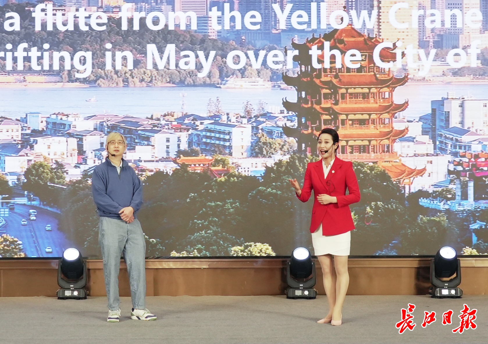 香港永安旅游助理总经理邓利平与武汉国家金牌导游周媛两人融合快板、戏曲等艺术形式,对武汉特色文旅资源进行了创新推介。记者何晓刚摄