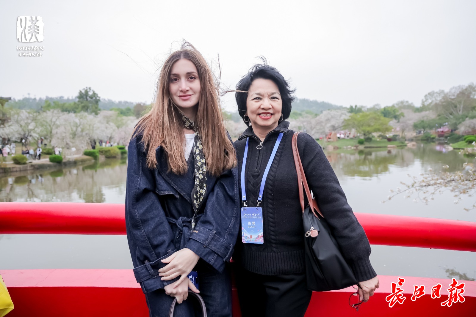 3月27日下午,国际旅行商打卡东湖樱花园。通讯员武文旅供图