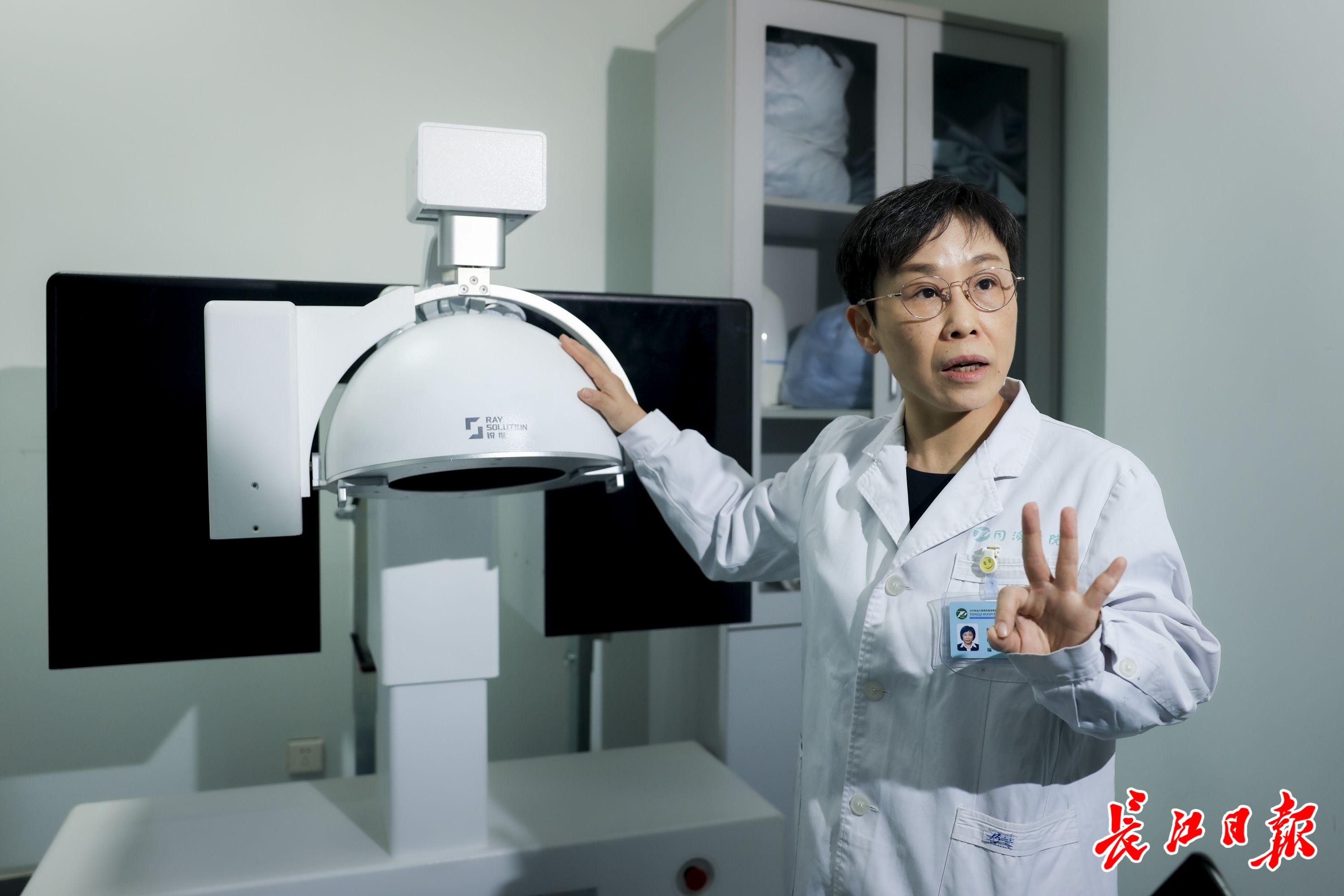 我依然记得那天去同济医院检查的情景。首先打上一针造影剂,45分钟后戴上“头盔”,坐在椅子上,一边做检查一边玩手机。医生说,盔随头动,无需像过去做CT一样用某个姿势平躺不能动。另外,我几乎听不到设备运转的声音,过去那种将头部放置于幽闭的探测环中做CT的压抑感也没有了。真没想到像烫头发一样轻轻松松就做完了检查。扫描的结果提示我患上了早期的阿尔茨海默病,从那以后我就在医生的指导下开始了规范的治疗和康复训练。