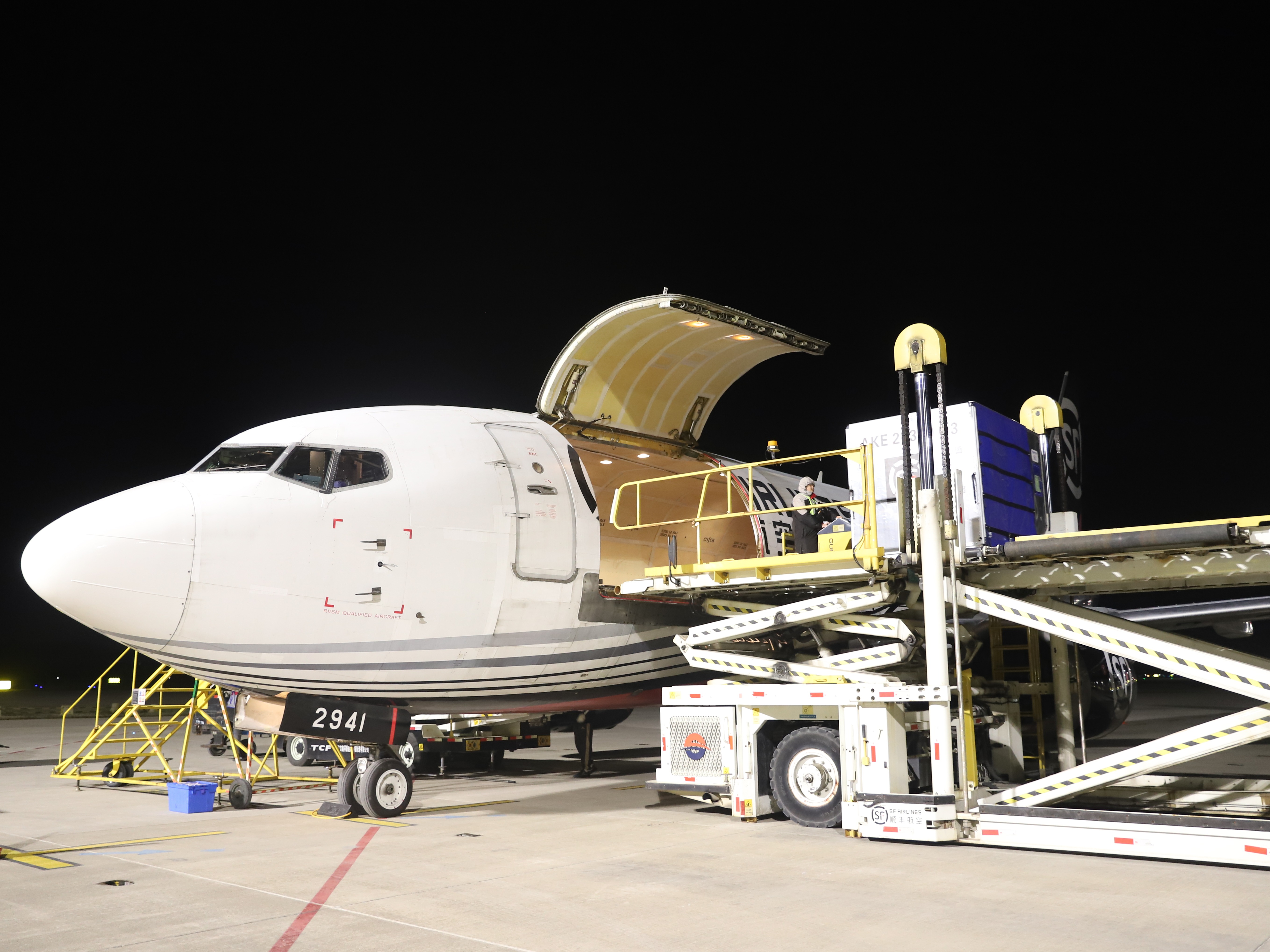 “鄂州=博州”货运航线航班正在装货。