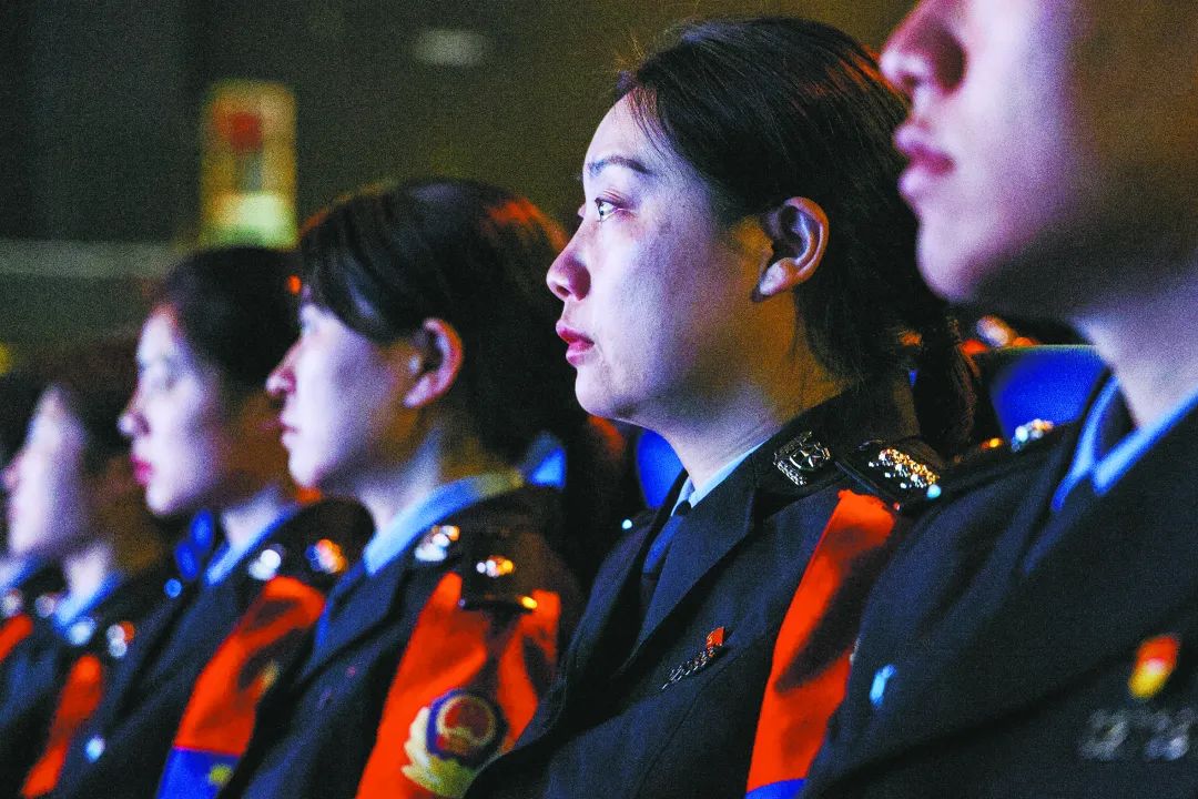 在台下观看节目的武汉市公安局江汉区分局 “邱建军先锋 队” 民警落泪。陈路坤 摄