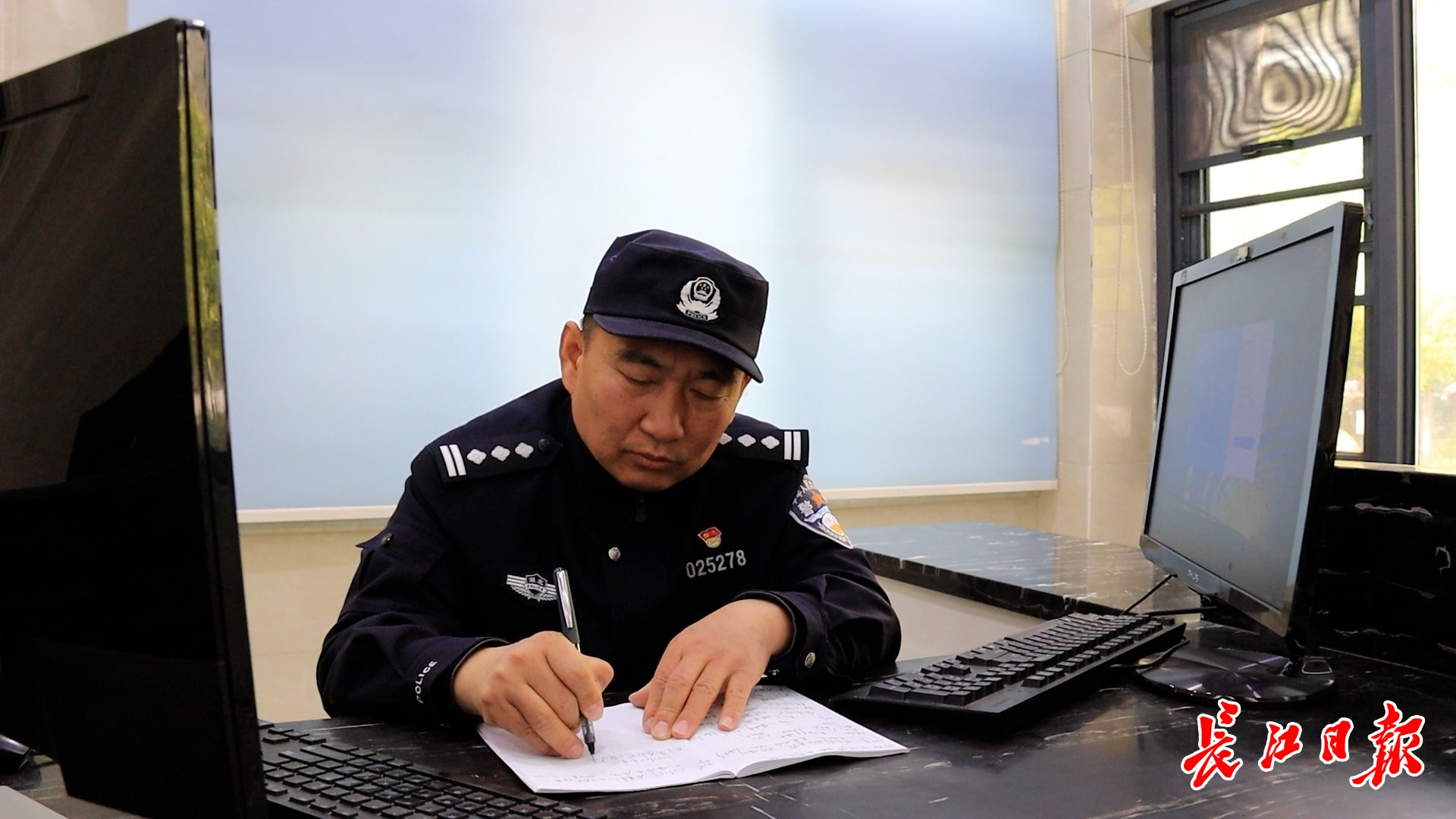 二七街派出所社区民警郁万荣在社区伏案工作。长江日报记者 夏奕 摄