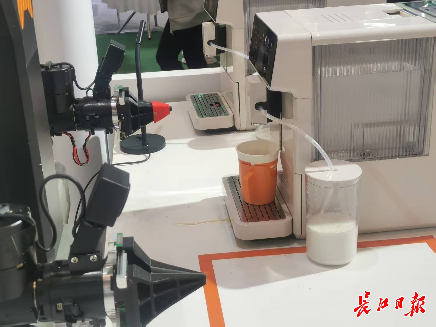 泰康具身机器人冲咖啡。长江日报记者 陈永权 摄