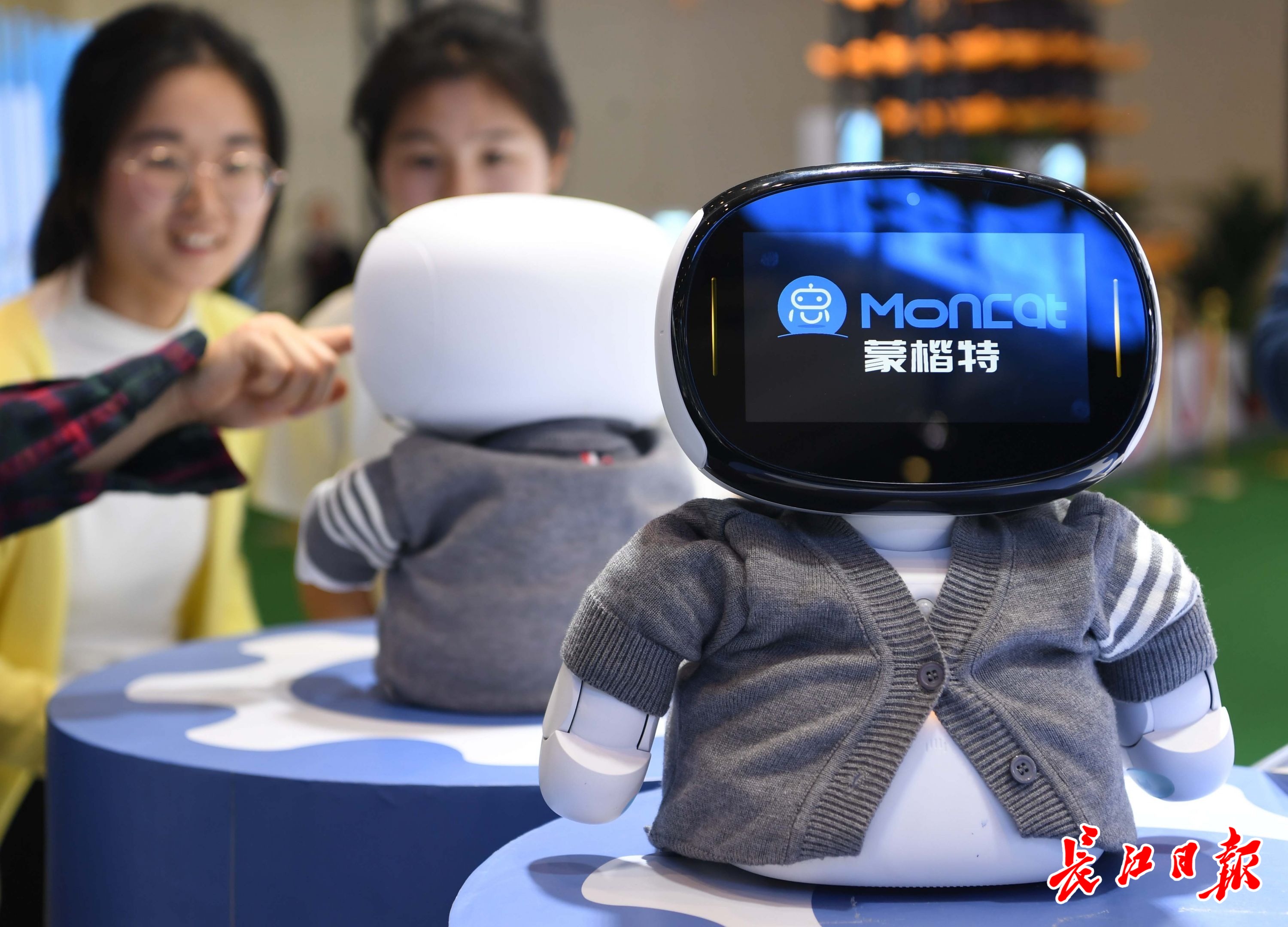 武汉蒙楷特科技自研的多场景陪护型机器人,能量血压、心率检测,提供健康指导。 长江日报记者 高勇 摄