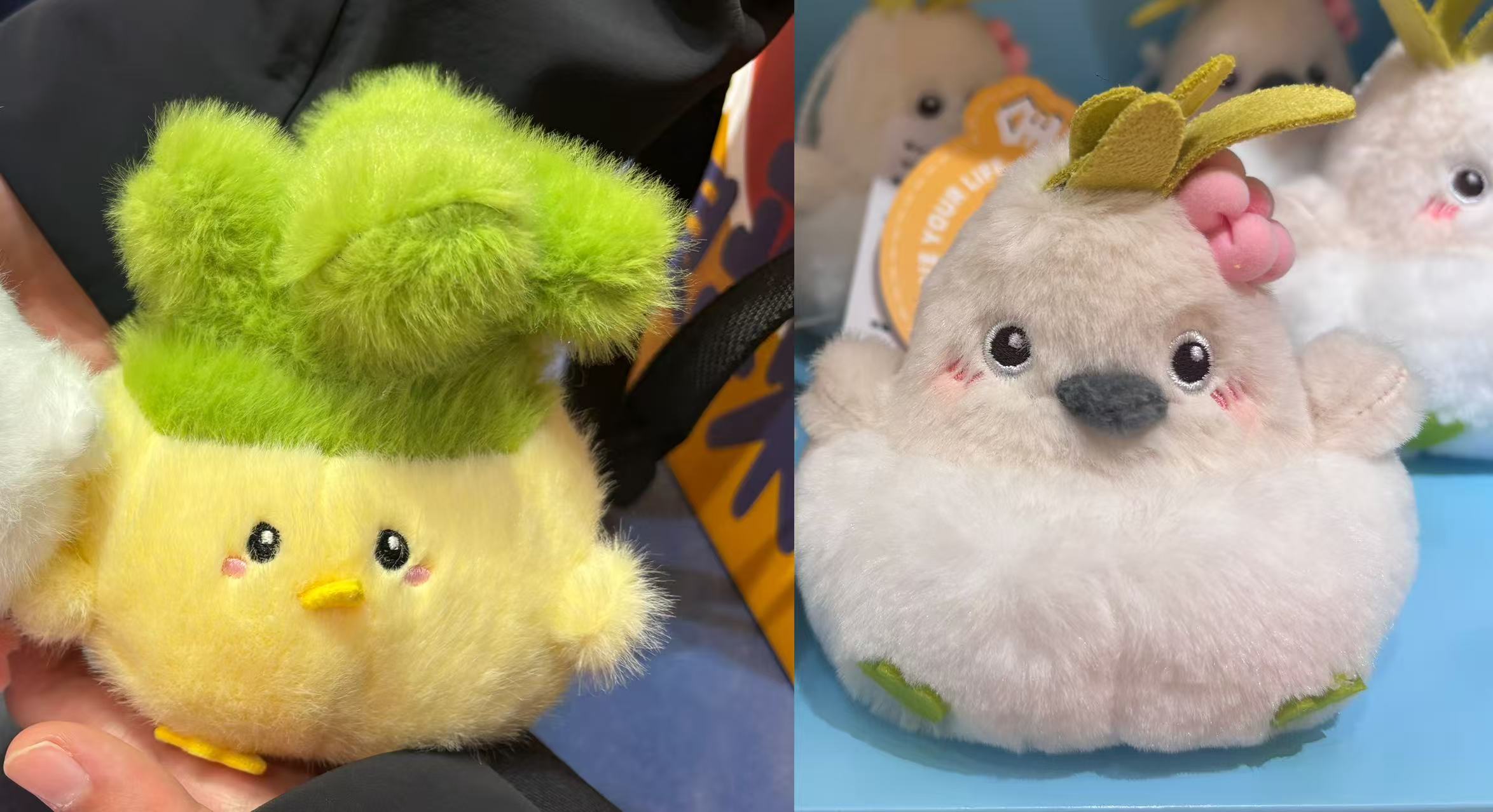 “我们在尝试的过程中发现,蒜瓣在下面的时候,会有一点像小宝宝穿的纸尿裤,后面我们几次打版的时候都比较注重对于蒜瓣造型的还原。”她表示,“蒜鸟宝宝”的蒜叶使用的是类似于软的麂皮绒一样的布料,并且每个蒜叶的倾斜角度会不一样,会更模拟叶子的状态。