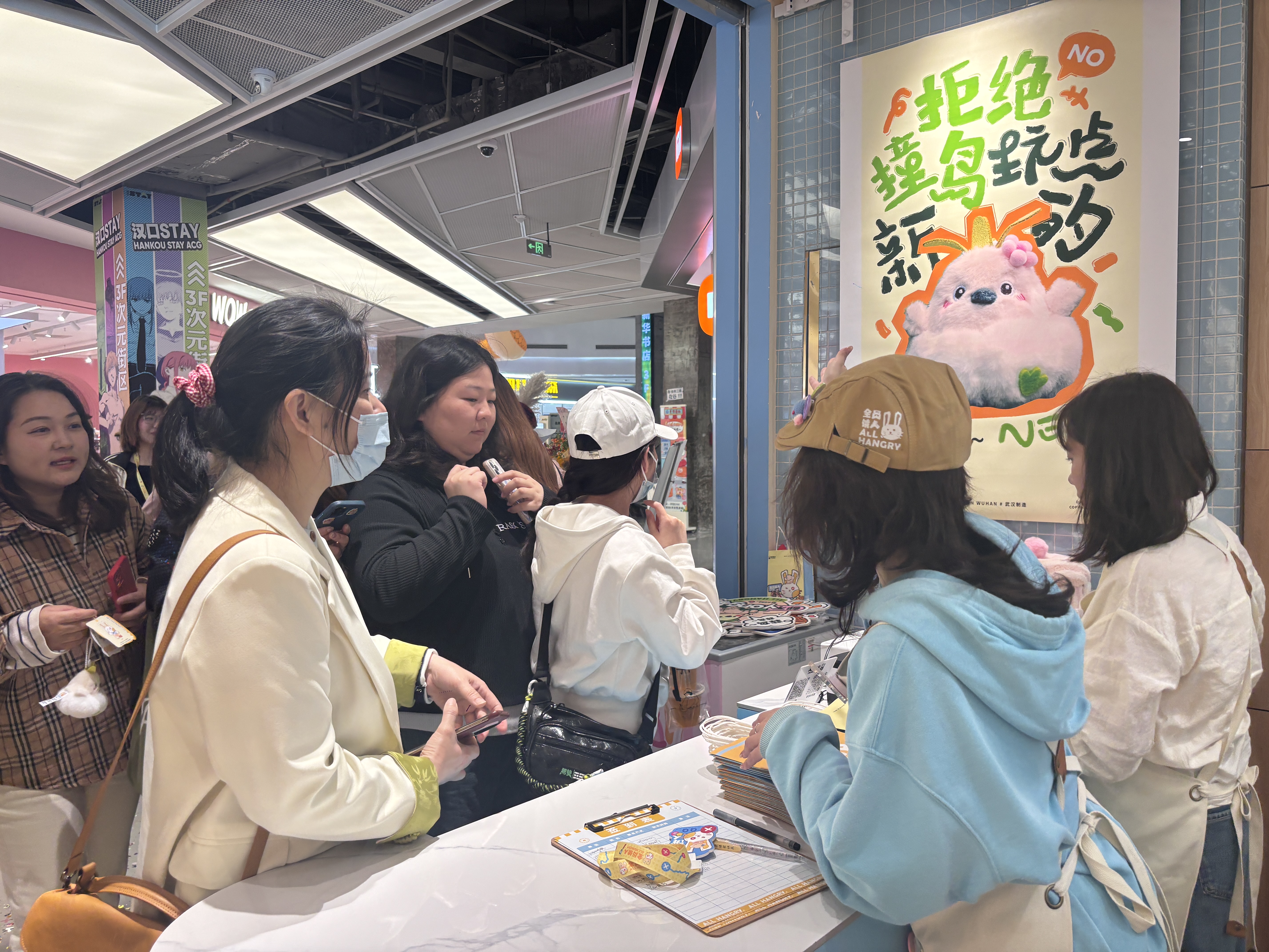 4月3日,“全员饿人”从一家10㎡快闪店拓展为实体门店。开业首日,便迎来了众多游客和市民购买。