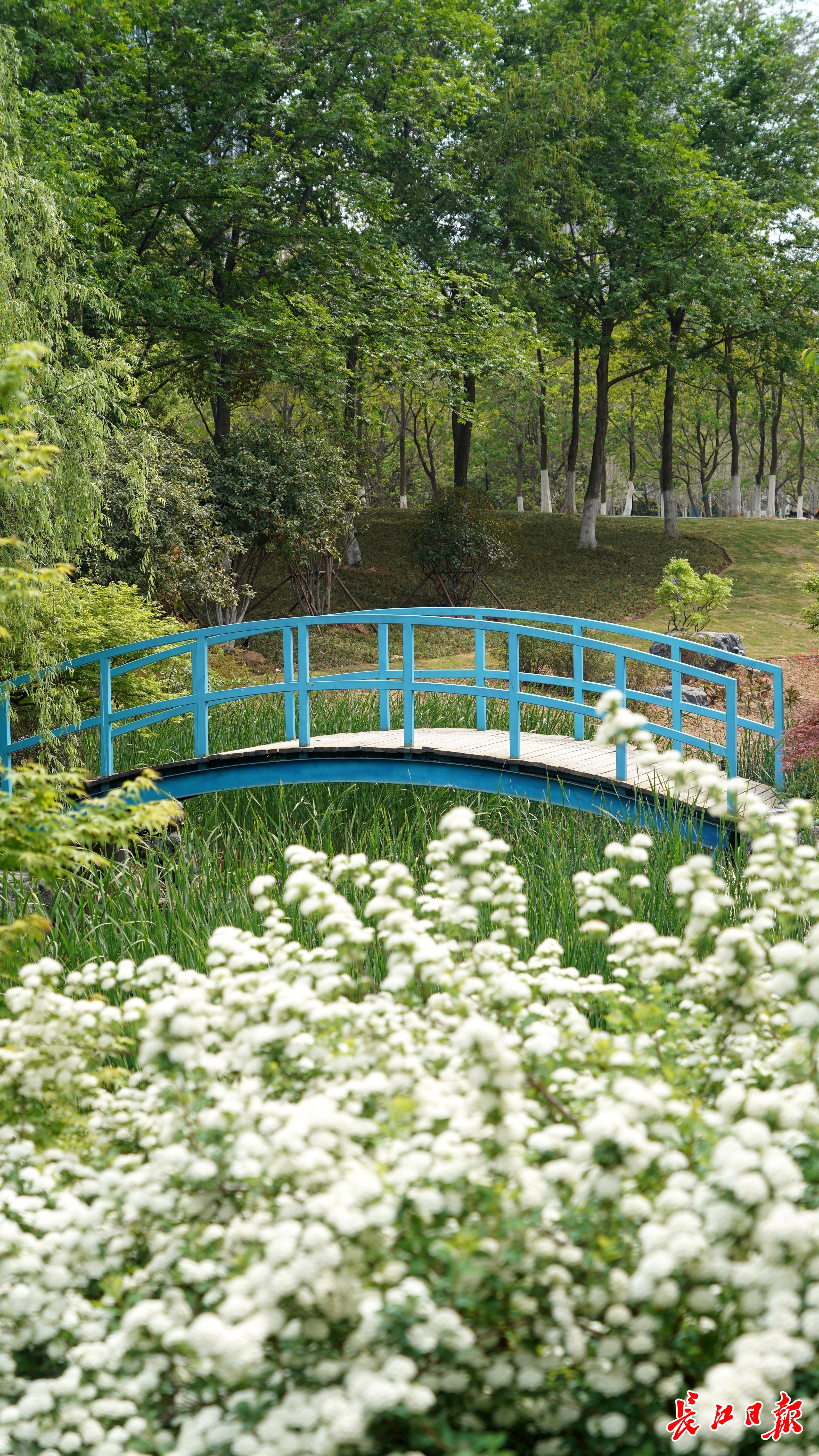 水岸花溪的改造正在收官,两岸种植了照手桃、垂丝海棠、紫藤、绣线菊、美人蕉等多种花卉。武汉市园林生态集团项目现场负责人孔宏伟称,水岸花溪近期将从沙湖抽水,使溪水流动起来,形成层层叠水景观。