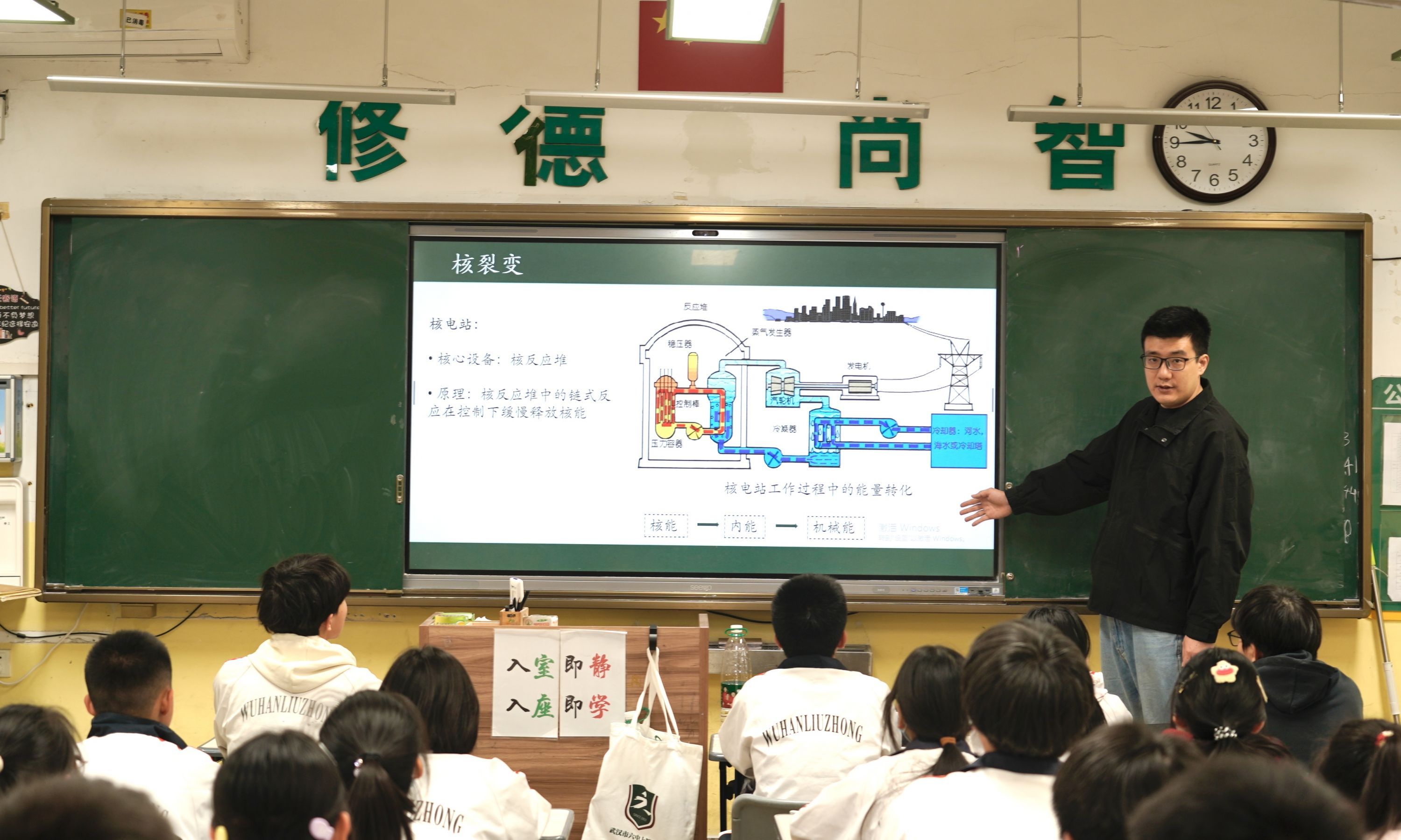 4月9日,武汉市六中上智中学黄石路校区。一堂物理微课在郑学敏老师与一群初三学生的讨论中展开。屏幕上播放着《核能——大国重器的能量密码》视频,里面梳理了我国核事业发展大事件,以及国际上有关核安全的正反案例。